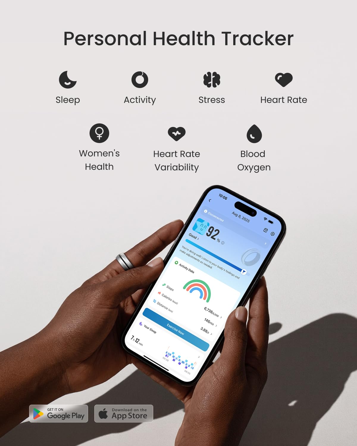 No Subscription Fees: Seamlessly connect the RENPHO LYNX Smart Ring with the Renpho Health App—no subscription fees required. Compatible with both iOS and Android, the App syncs with Apple Health and Google Health Connect.