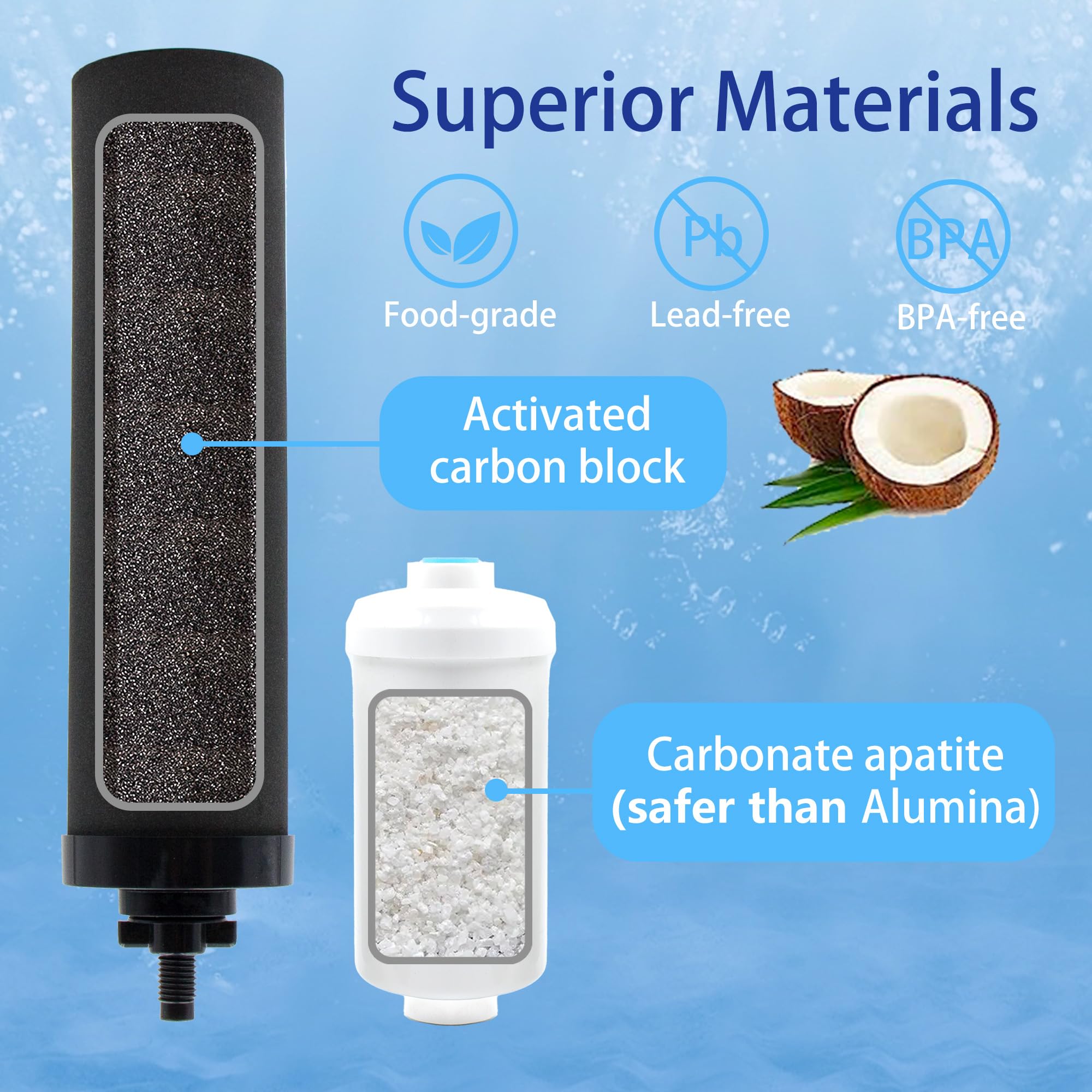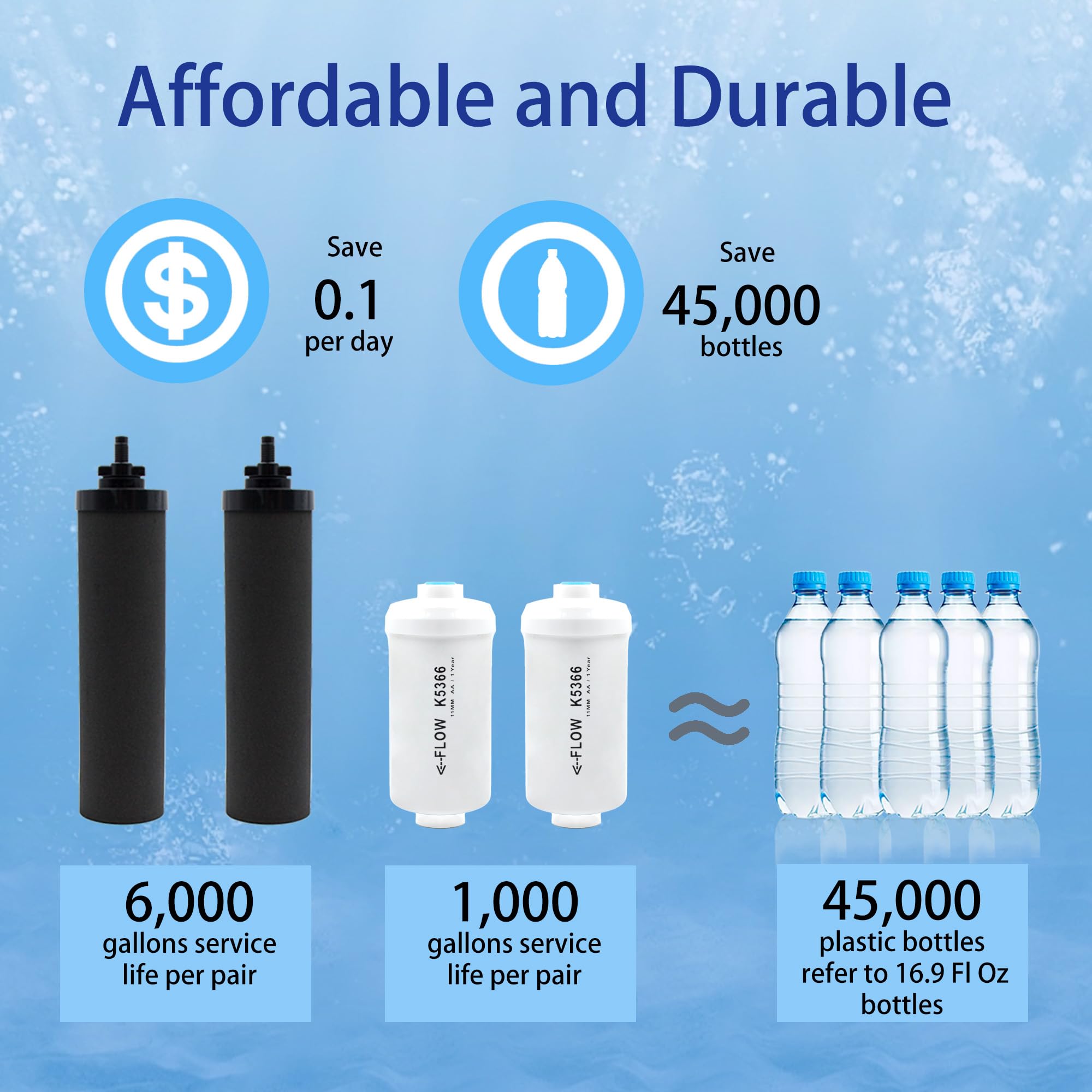 【Durable Life Span】: To ensure your machine's performance is at its peak, we recommend replacing the white fluoride filter every 1,000 gallons per pair and the black carbon filter every 6,000 gallons per pair (depends on the quality of the tap water you are filtering). ⭐Please note that you have to totally submerge the carbon filter about once a week in order for the drip system to siphon properly.