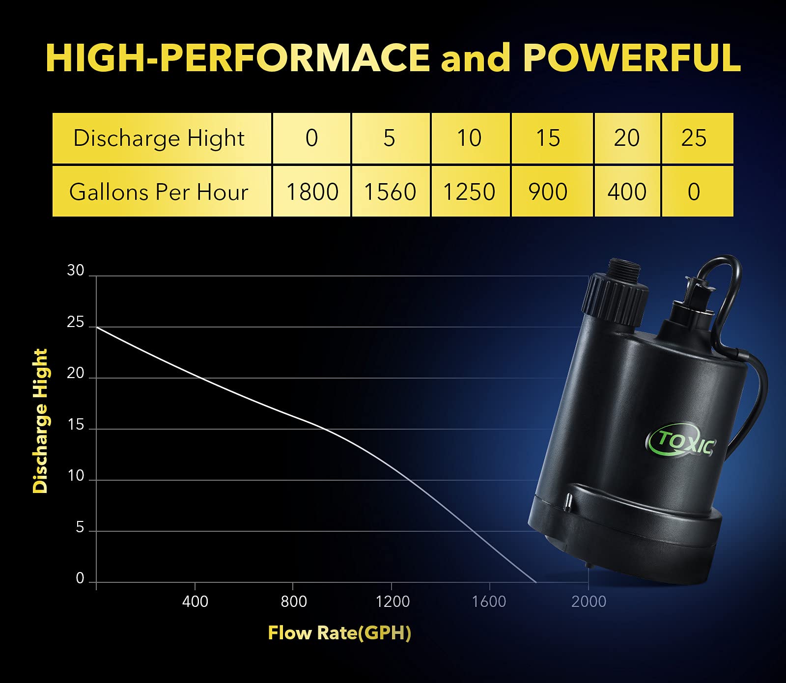 Pumps 30 gallons per minute,1800 gallons per hour at zero feet