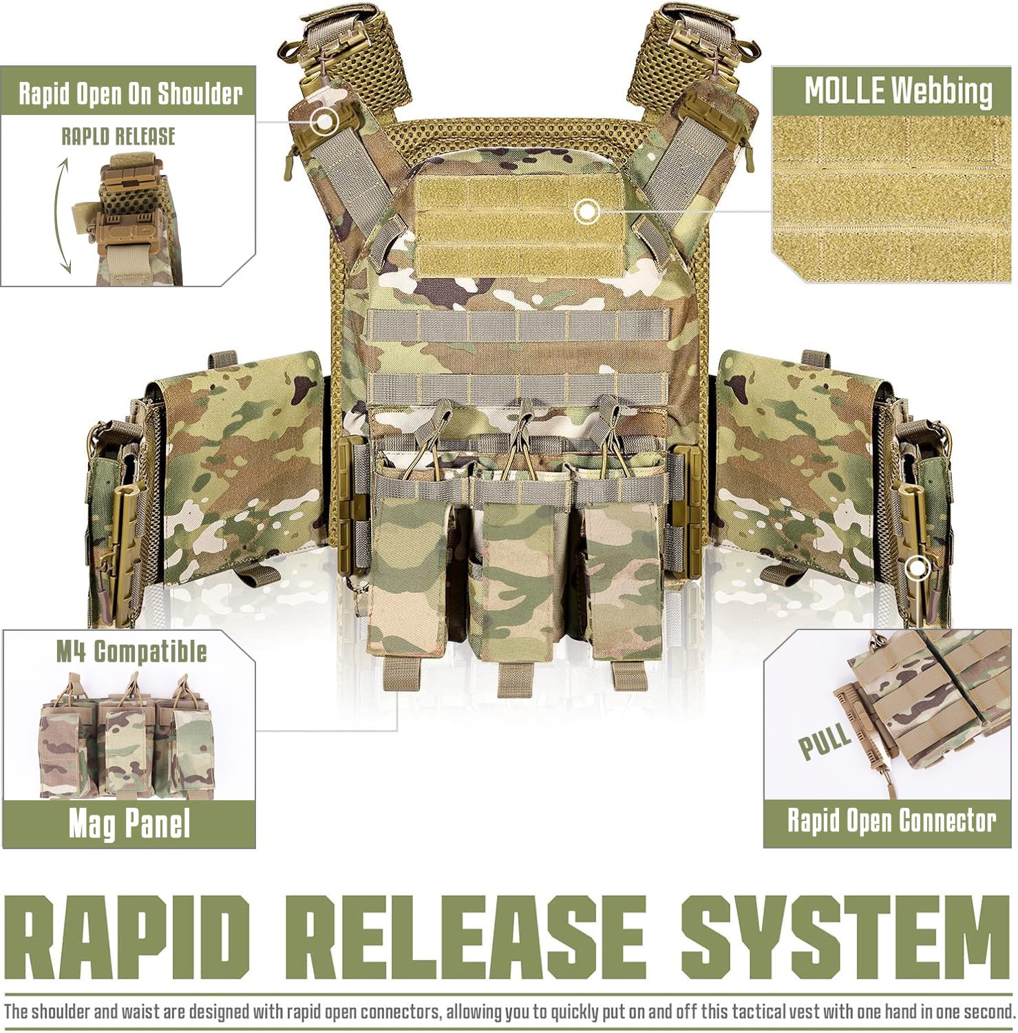 FUNCTIONAL-RAPID OPEN:This weight vest is built with rapid-open connectors on the shoulders and waist that make it easy to quickly put it on and take it off. The unique cummerbund features integrated pockets that can even be accessed through the side for added protection in case it's required. The ideal training tool for combat training, field work, hiking, camping, extreme challenges, and fans alike.