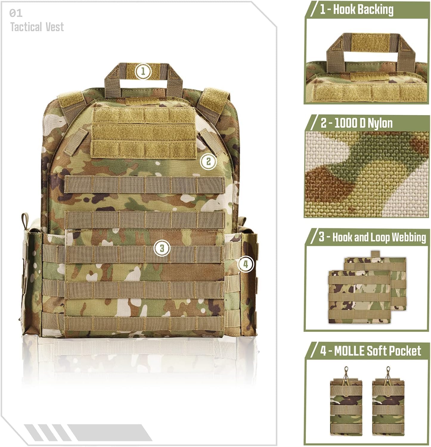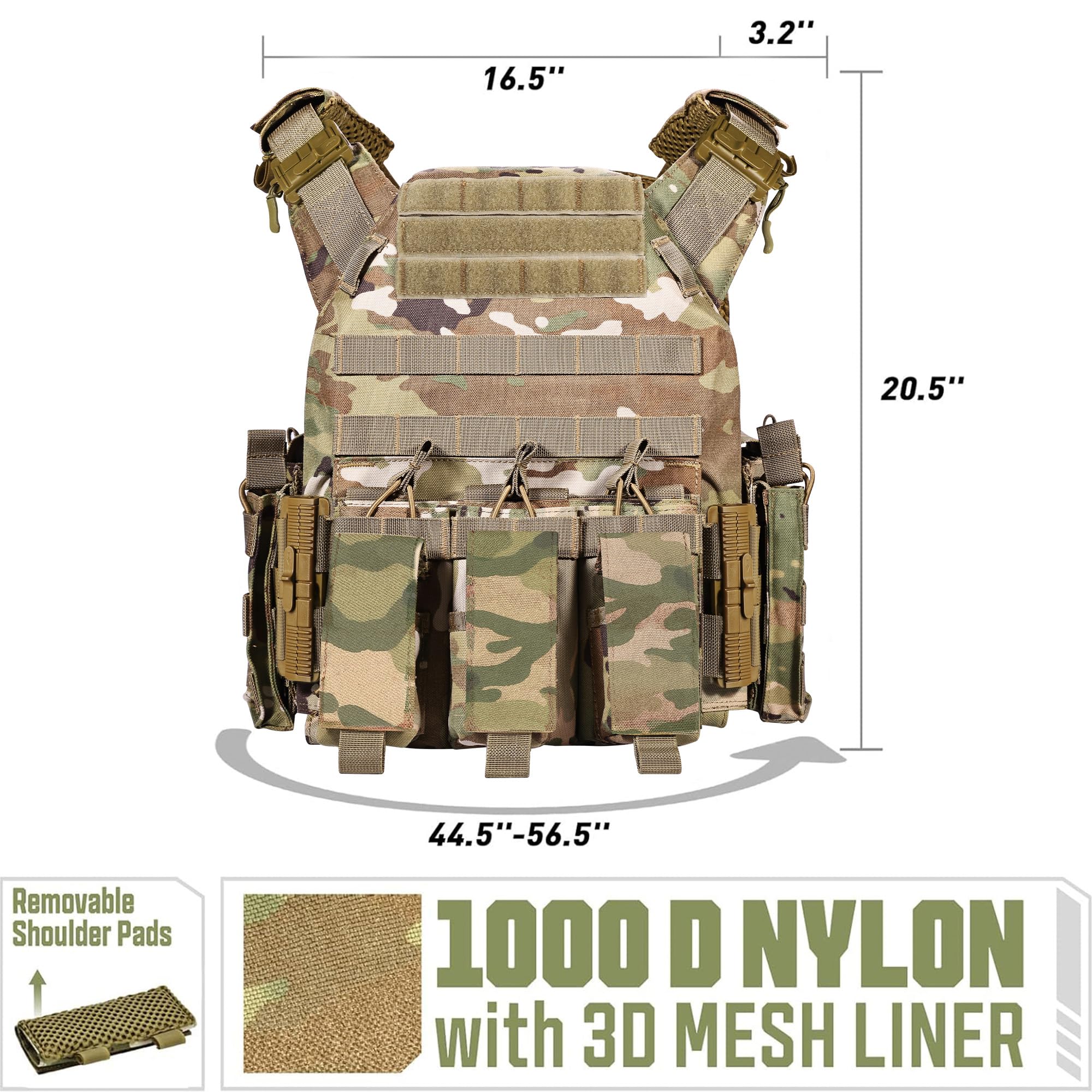 HIGH QUALITY Unique Style: The weight vest composed of 1000D fabric, high-tensile strength thread, and webbing is equipped with a map pouch and three modular heavy-duty mag panels.It comes with two stable side straps as well as adjustable padded shoulder straps. The weight vests are fully padded with breathable 3D mesh, which are comfortable and keep you cool by allowing air circulation.