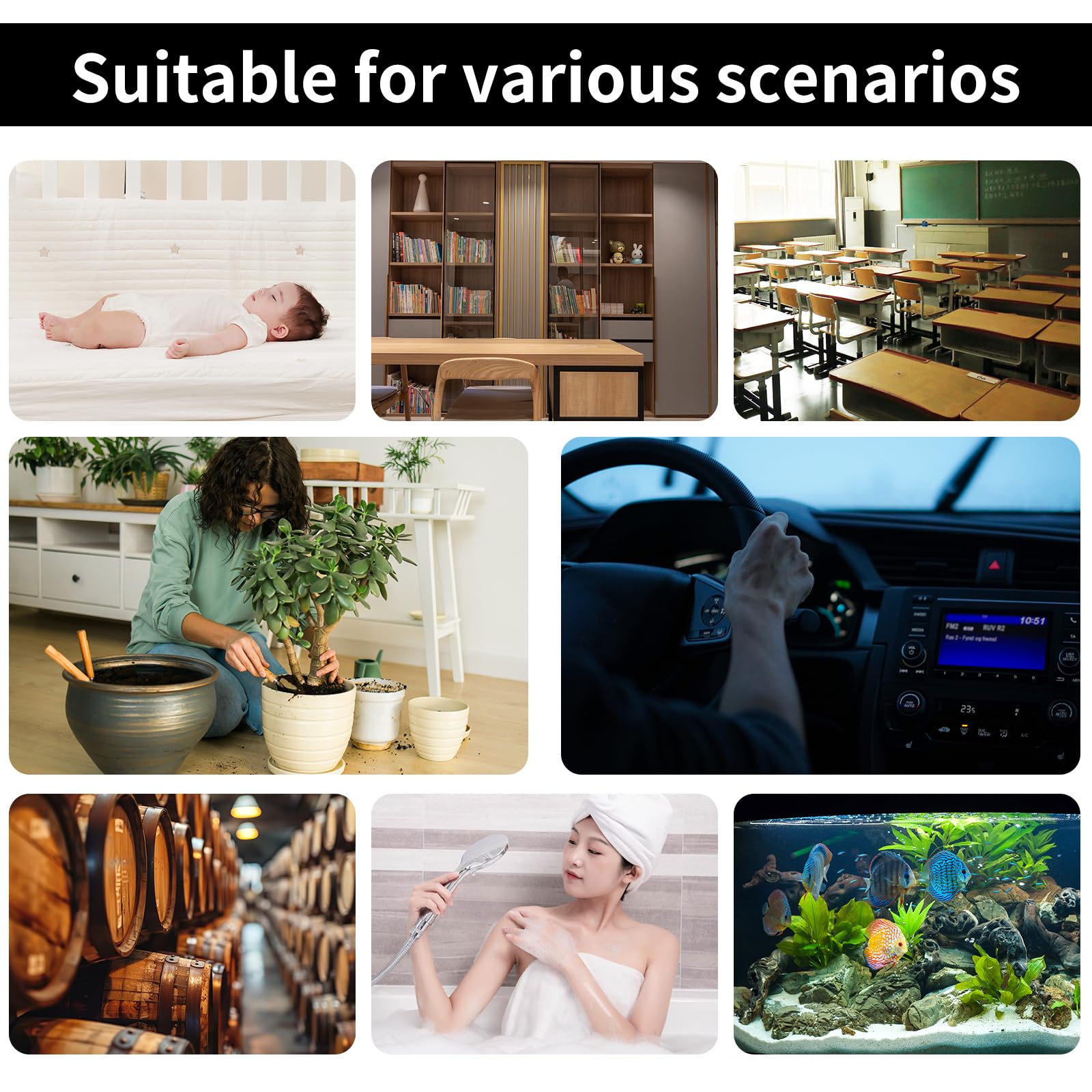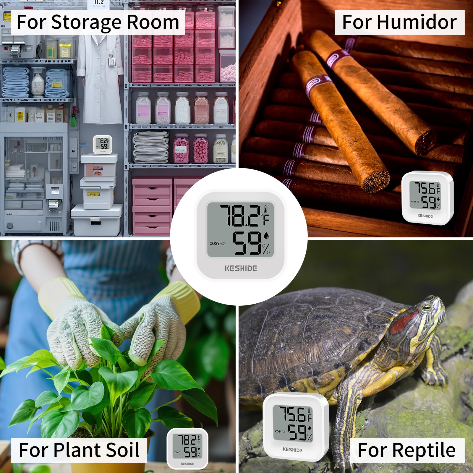 【Widely Application】This mini hygrometer features a compact 2*0.8-inch diameter design that stands up and can be installed multiple times in aquariums, homes, offices, pet habitats (reptiles, hermit crabs), and storage areas - perfect for monitoring pet health or sensitive equipment.