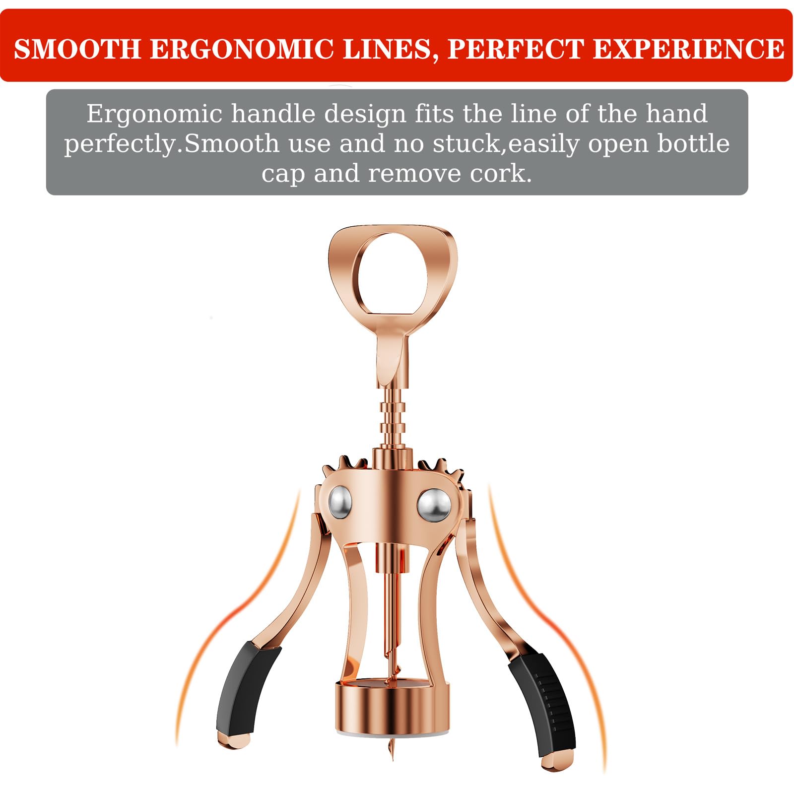 [DESIGN UPGRADE]: Ergonomic, non-slip rubber handle cover helps reduce downward pressure on pulling out the cork. The wing opener lever principle applied structure saves you the power to open the wine easily