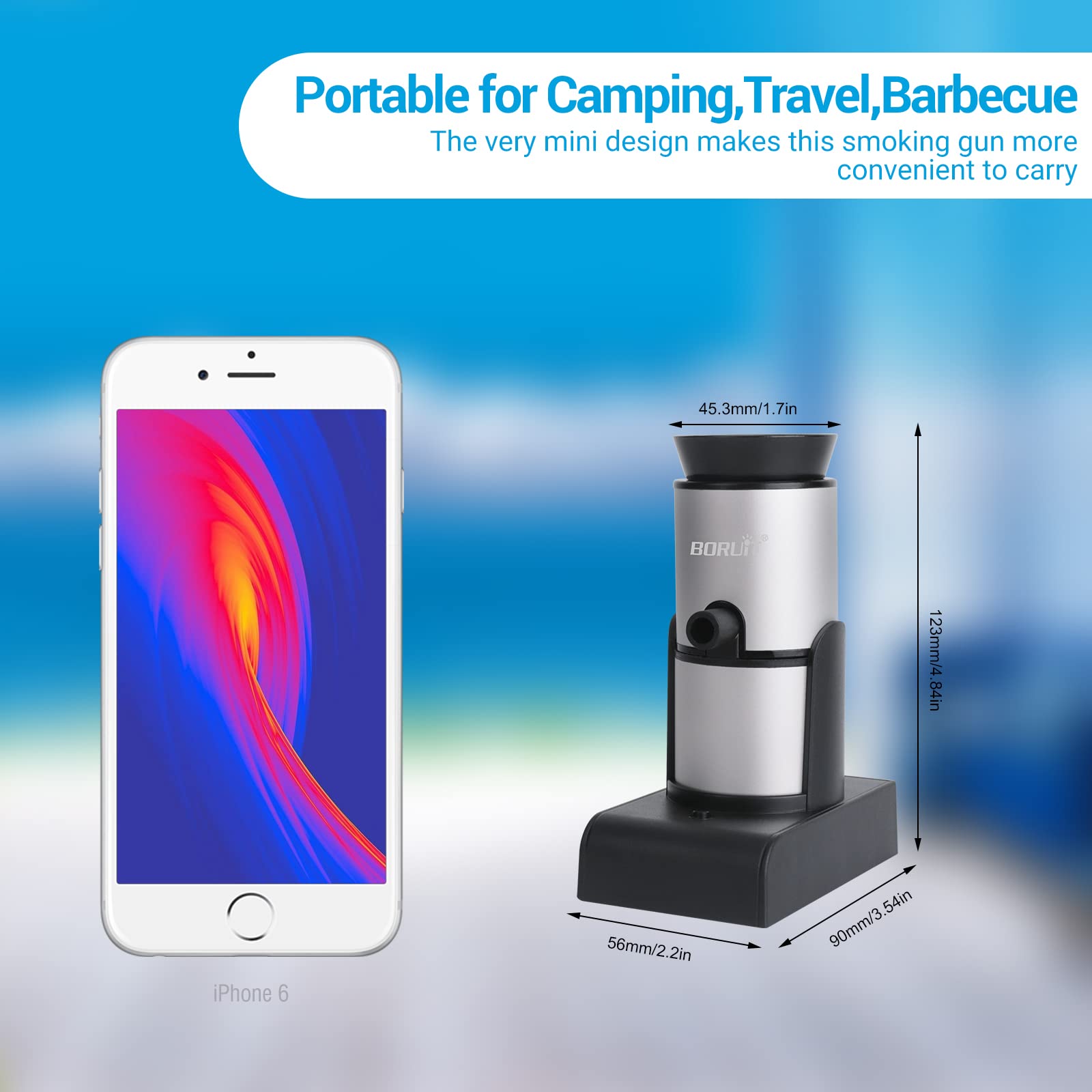 Portable Smoker Gun : Larger Wood Chips Container ,more wood chips can be stored to better avoid clogging .Easy to store and carry,the cold smoker is very mini and light ,only weight 0.7lb,which can be placed directly on the palm of the hand and is very portable ,saving space and money,A good choice as fathers day gifts