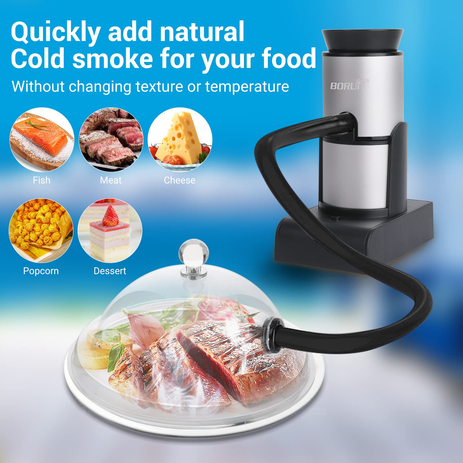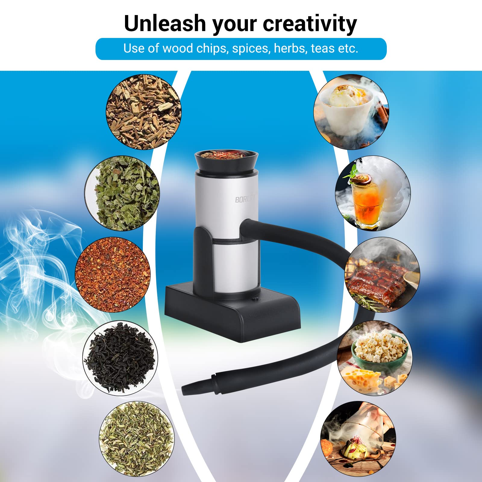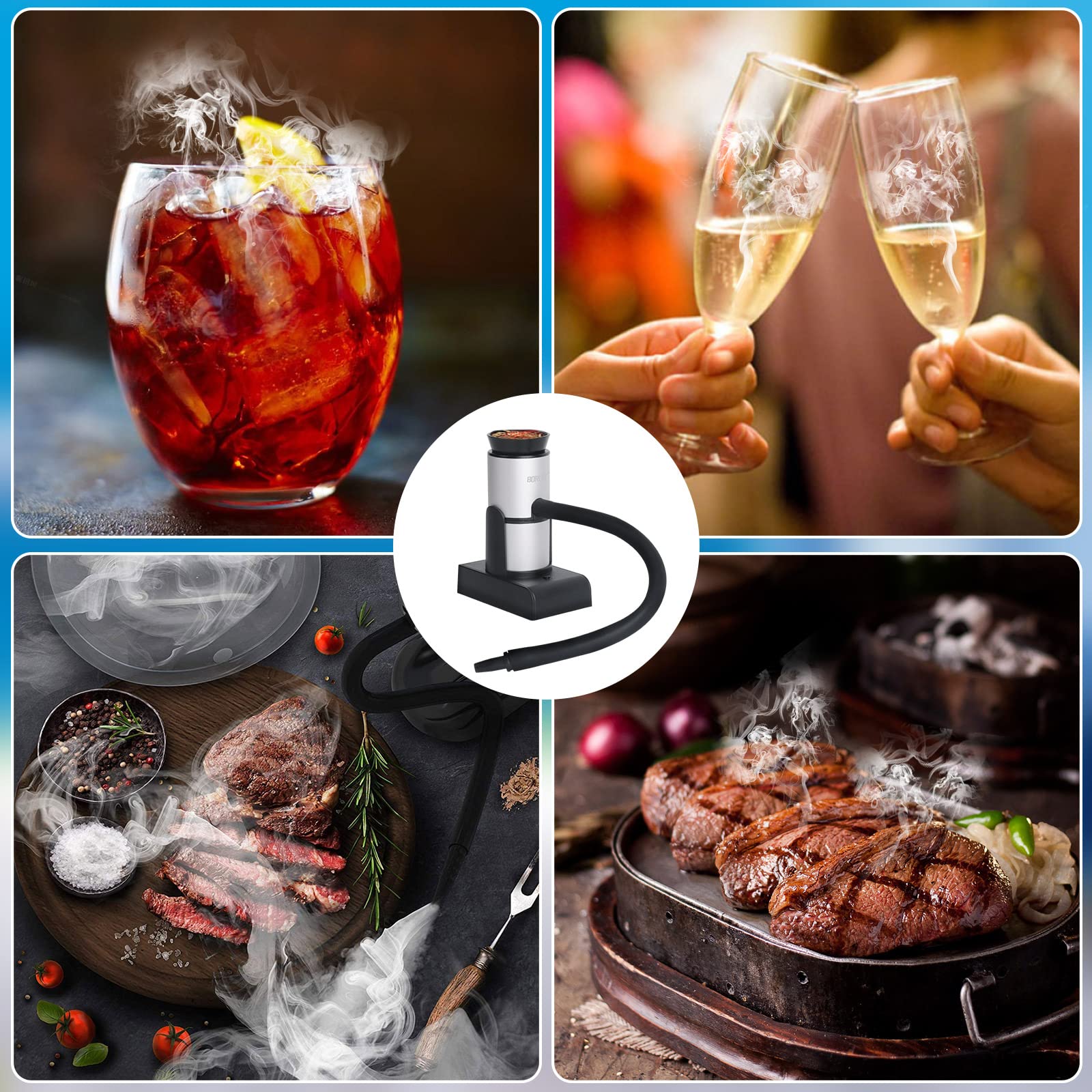 Healthy Smoking Gun : The smoking gun can add smokey taste and aroma to your food or drink in about 30 seconds.Using real wood chips, tea, herbs, spices, hay, dried flowers ,which can produce cold smoke for food or drinks without changing the texture and temperature, away from artificial flavors ,chemicals,bring health to your family