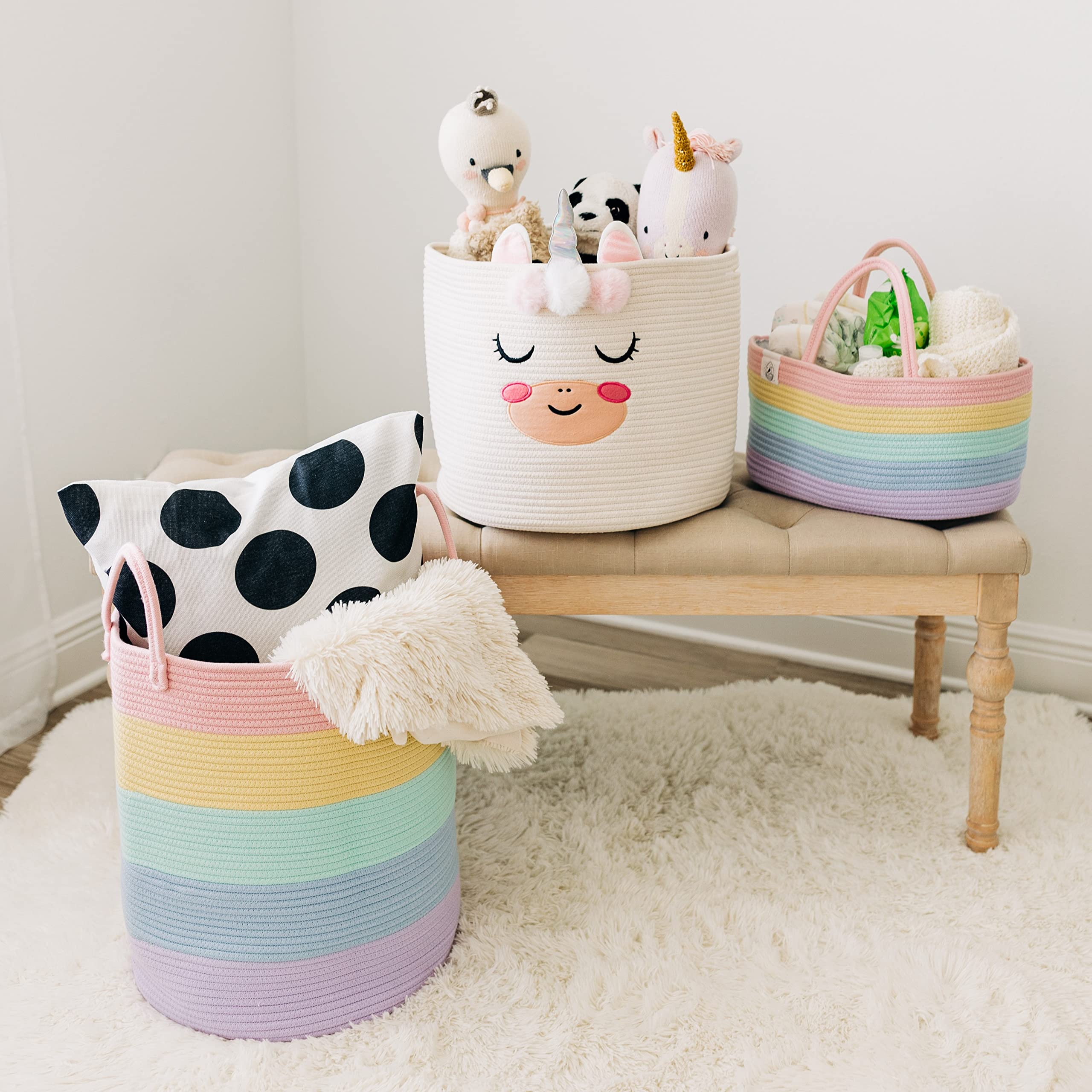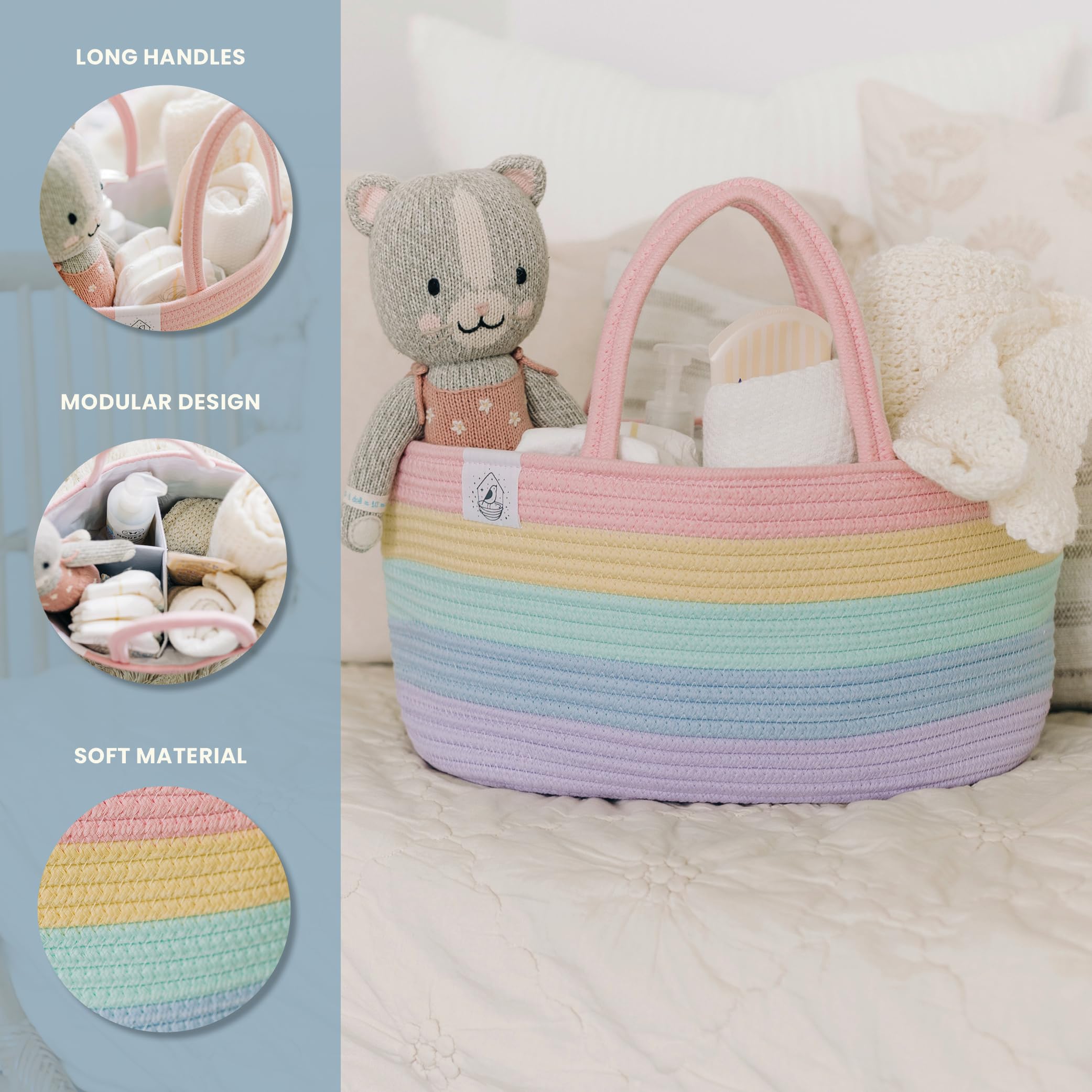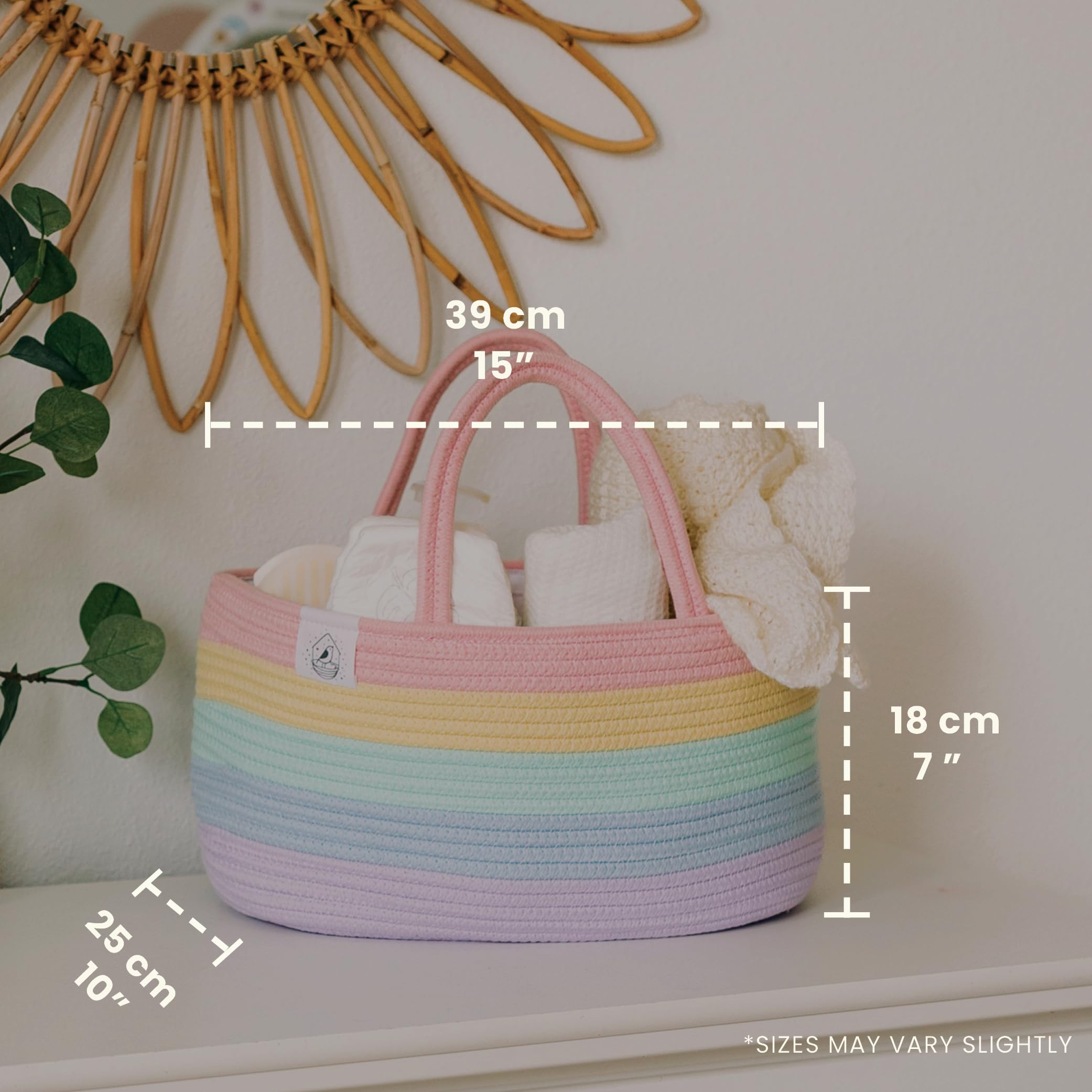 Trendy, Soft Touch Cotton Weave for Rainbow Baby Gifts – The interior of this diaper organizer features an ultra-soft lining while the exterior boasts a premium quality cotton rope weave that helps it retain shape. Perfect as a portable changing table station for on-the-go parents. Colorful Baskets – Featuring all the colors of the rainbow these rainbow baskets will leave young children inspired while also enhancing the look and feel of your space.