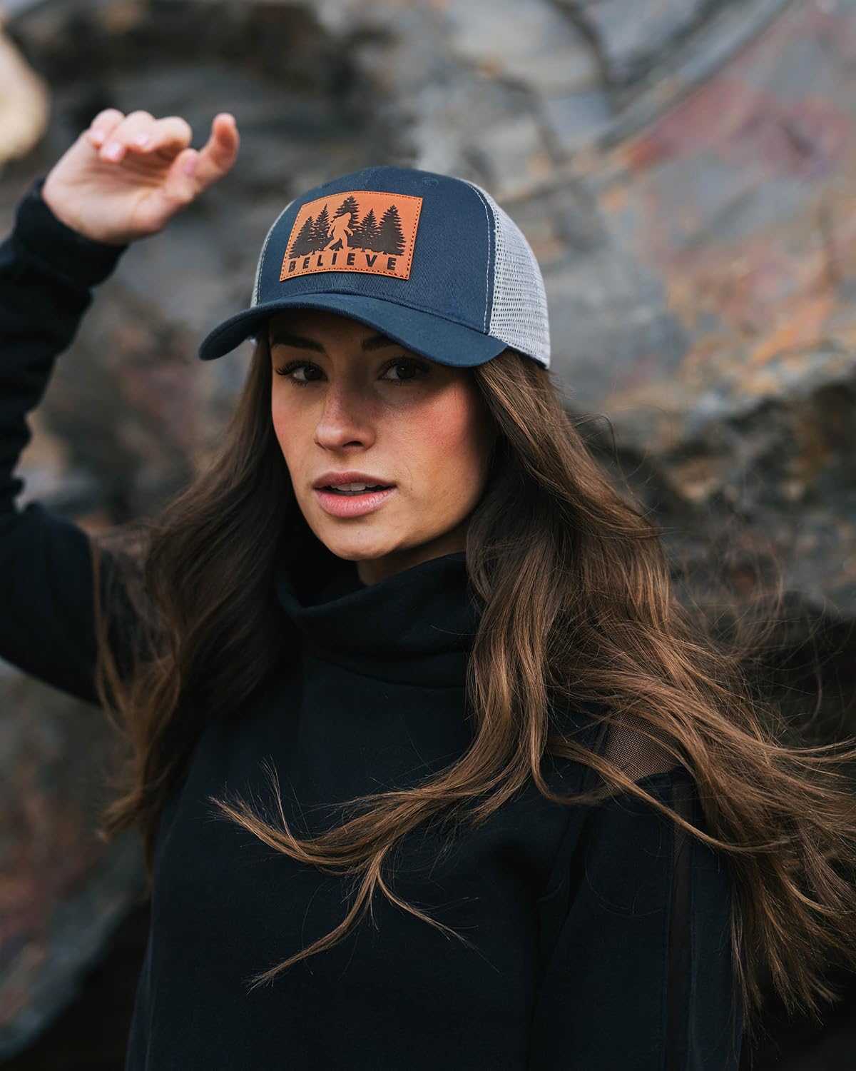 【Leather Wild Bigfoot Designs】: This Bigfoot hat features a unique design that combines elements of forest and mountain scenery, with an exquisite Sasquatch leather logo on the front. It's the perfect accessory for Sasquatch lovers and outdoor enthusiasts, as it blends seamlessly with any outdoor attire and is sure to turn heads wherever you go.