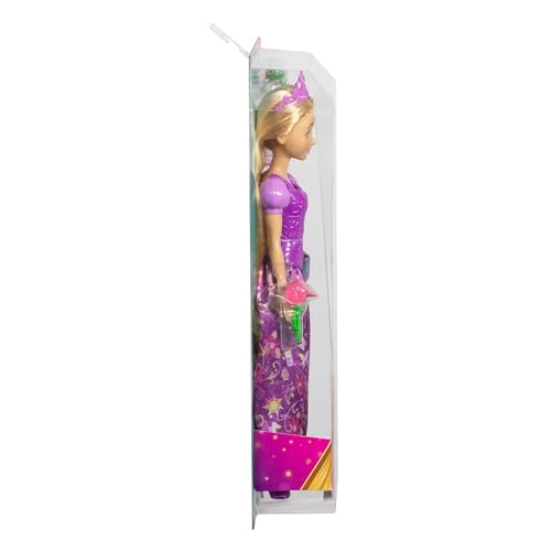 Disney Princess 2-in-1 Stories Rapunzel fashion doll set is inspired by favorite moments from Disney's Tangled! Posable Rapunzel doll features two distinct looks—going on a picnic or spending a day making art—and include two easy-to-use, snap-on bodices; two soft skirts; and nine themed accessories. It's the perfect gift for Disney fans eager for more Rapunzel stories! Doll cannot stand alone. Colors and decorations may vary.