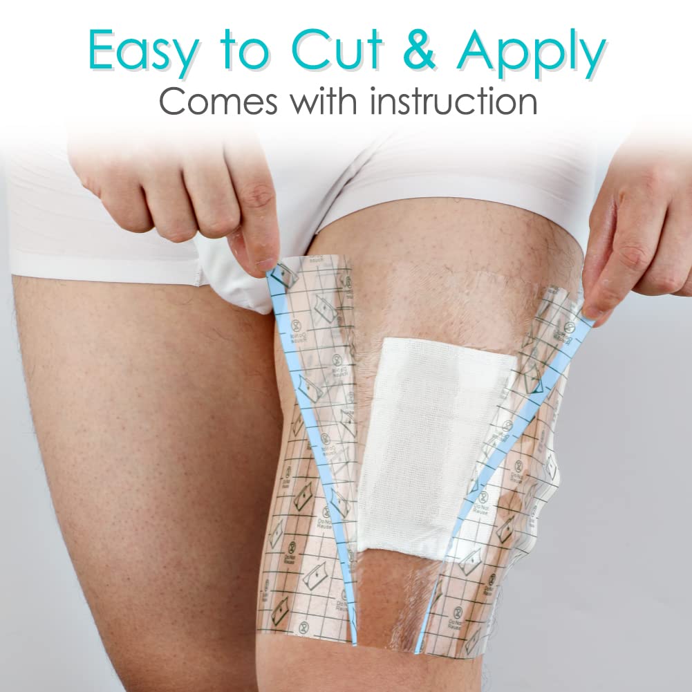 Dialysis catheter shower cover for large wound care - perfect for picc line, dialysis catheter and surgery after-care! For most of after dialysis patient , it was painful they do not have the freedom of showering. Worry about tapes do not sealed water tight, water will go thru, then it causes infection happens. With shower protector for dialysis catheter, you can take bath like a breeze, no more haste. Why choose waterproof latex free clear catheter covers for showering? Allows freedom of showering without getting port wet Waterproof dialysis catheter shower cover allows to seal wounds won't get wet, makes shower become an easier thing Covers wound dressings well, protecting wounds keep it dry Superb adhesive, seal the wound nicely Fits for covering large wounds of body, like central line/chest port, stomach/heart/abdomen and so on Please make sure the wound is cleaned and ensured it's completely dry before adhering to skin It has helped her tremendously with the pain/itching/sleeping Catheter covers for showering is clear, so you know the healing progress without peeling Easy to use/remove, without tearing skin Perfect protection for new tattoo, helps healing better Makes daily dressing changing much easier Extremely flexible and stretches with skin WARM TIPS *Please talk to wound care specialist before buying showerproof transparent adhesive film dressing. To confirm if sealing off certain wounds is recommended or not. *Size instruction: you can measure your skin around whatever it is you need to keep dry and add another few inches to allow for errors in placement. RISK FREE - Click "Add to Cart" above to get yours now!