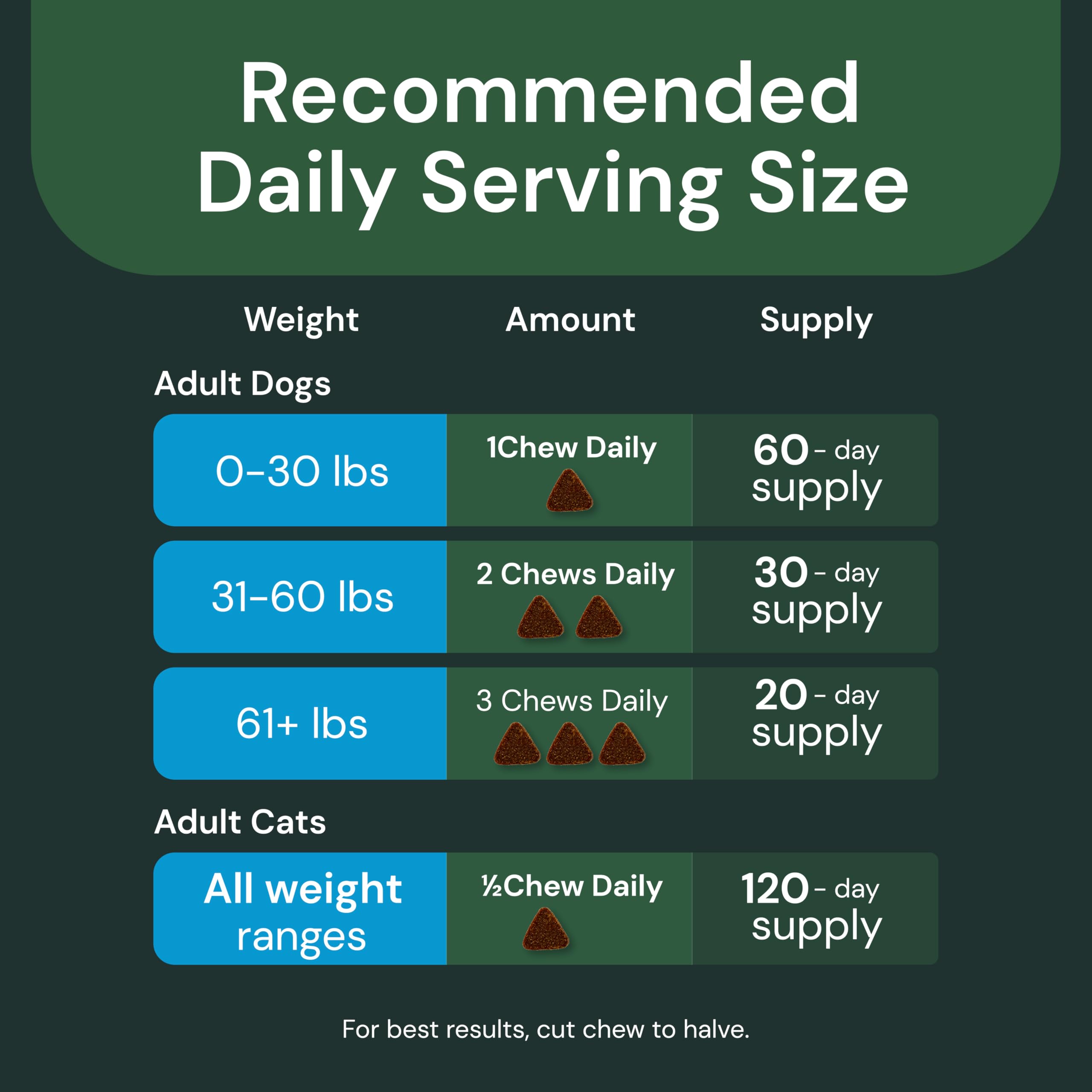 Balanced Digestion: These chewable digestive aid supplements have a flavor pets love, perfect for dogs and cats of all breeds and sizes as a digestion supplement*