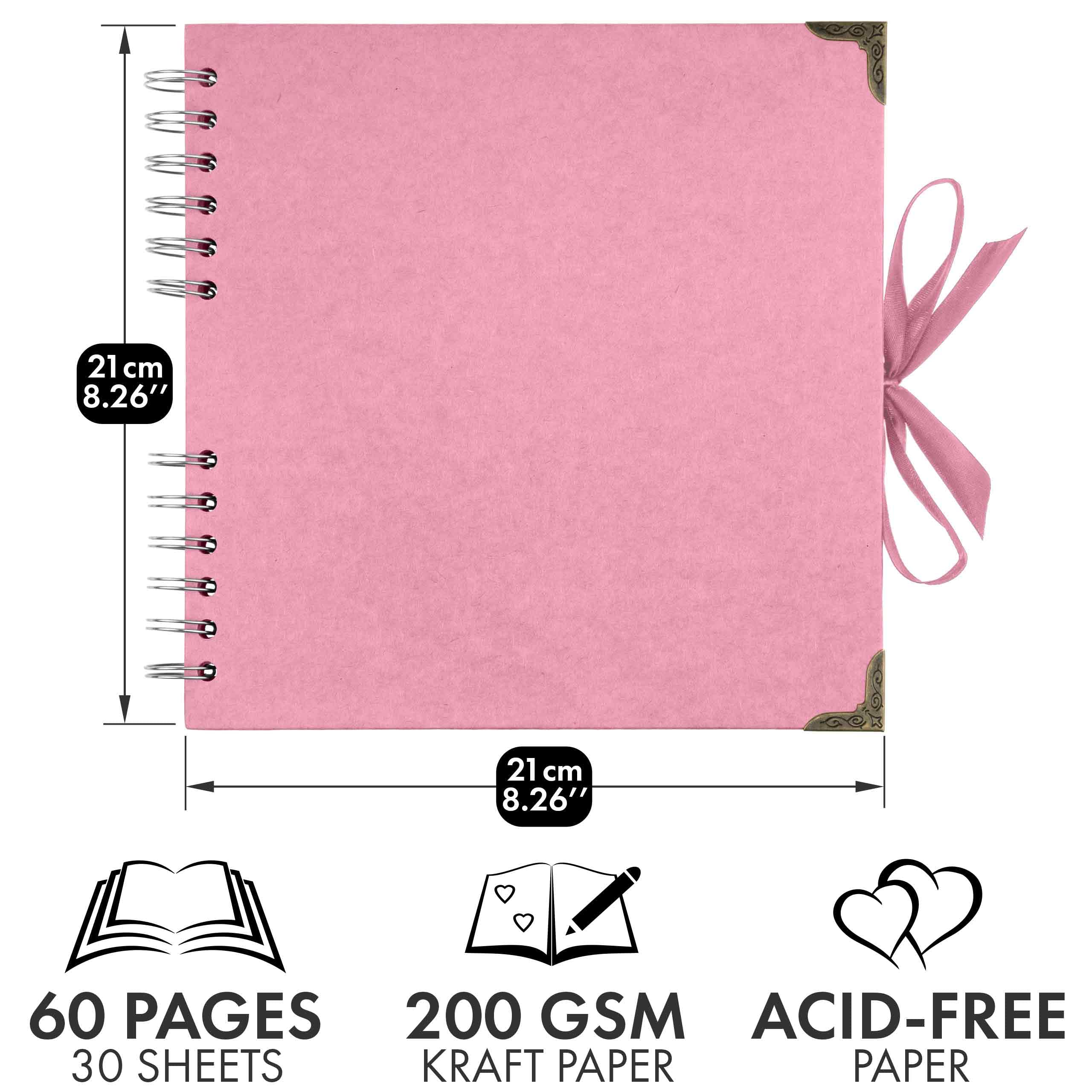 This 8 x 8 Inch scrapbooks is durable and suitable for long term storage for you and your loved ones beautiful memories. It has 30 sheets, 60 pages of high quality thick paper, designed with ribbon closure, hard cover and corner protectors