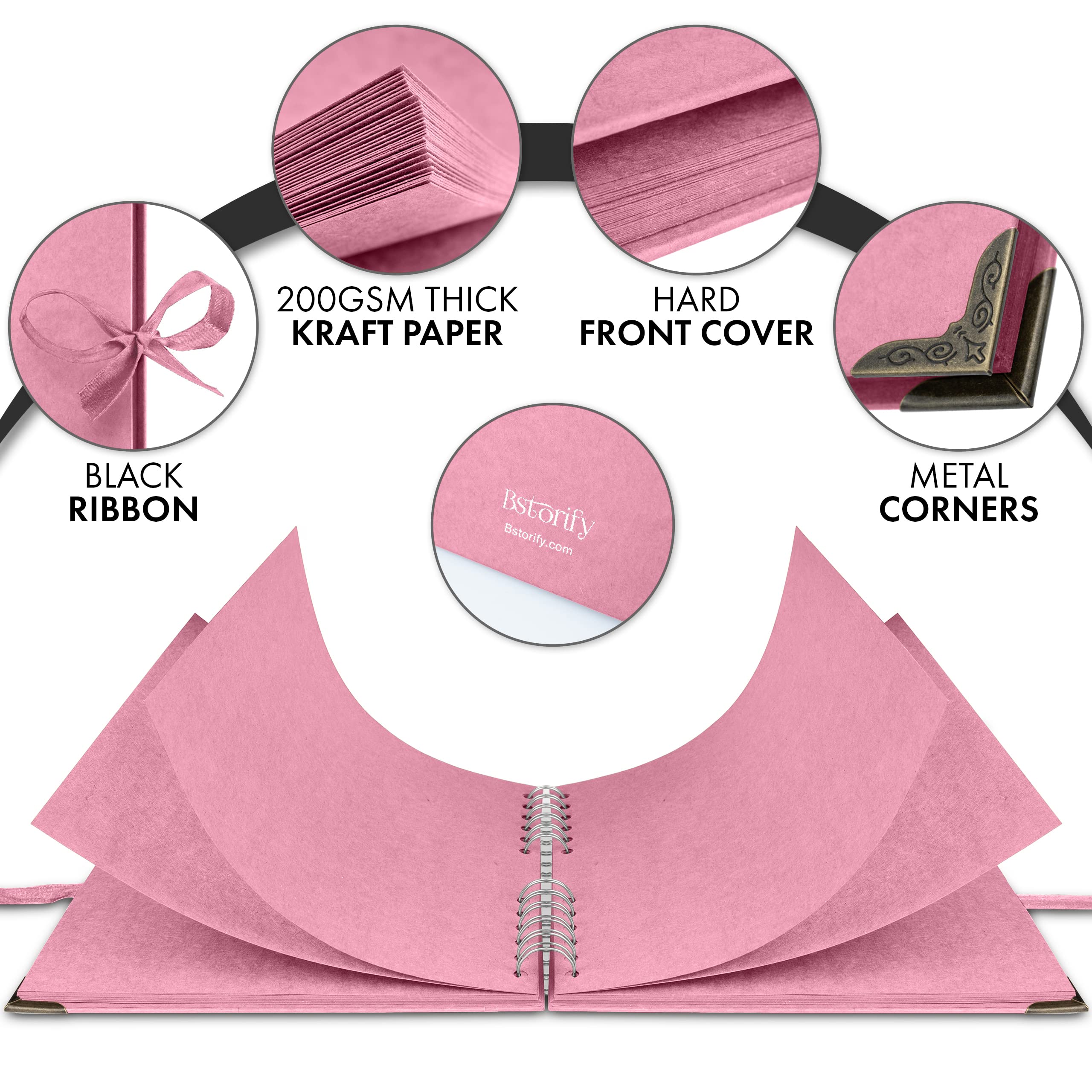 The spiral bound spine allows the scrap book to expand to fit in your photos, postcards, souvenirs. You can tie the ribbon into a bow or other style that you like and make your photo album scrapbook as individual as your memories and keep them endlessly