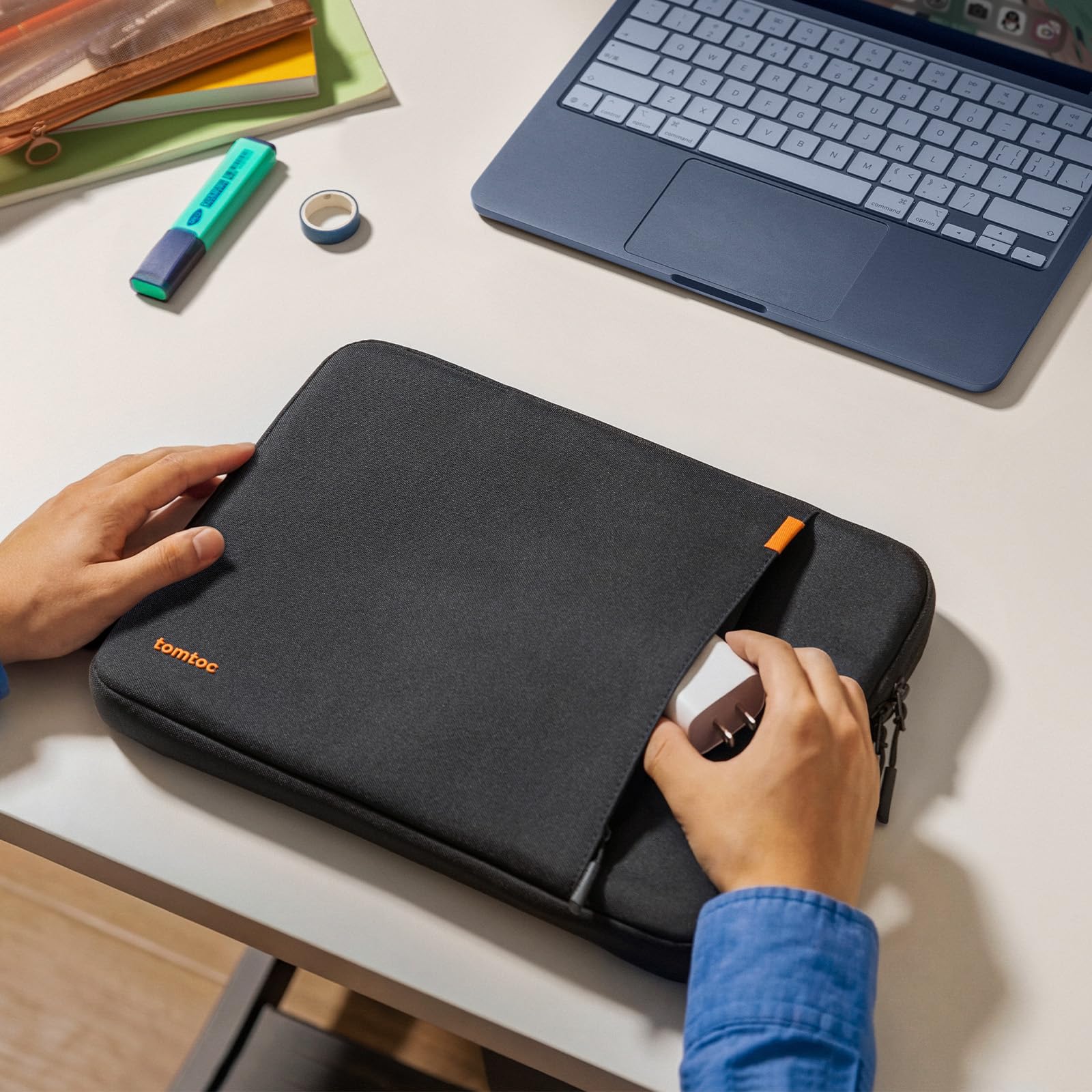 Military-Grade Protection: To combat the toughest situations: from falls to shocks to vibrations, tomtoc proposed the concept of 360 protection and designed the laptop sleeve with CornerArmor Technology, high resilience edges, and high-density soft padding. It passed the Military-Standard-Drop-Test while also maintaining a sleek design