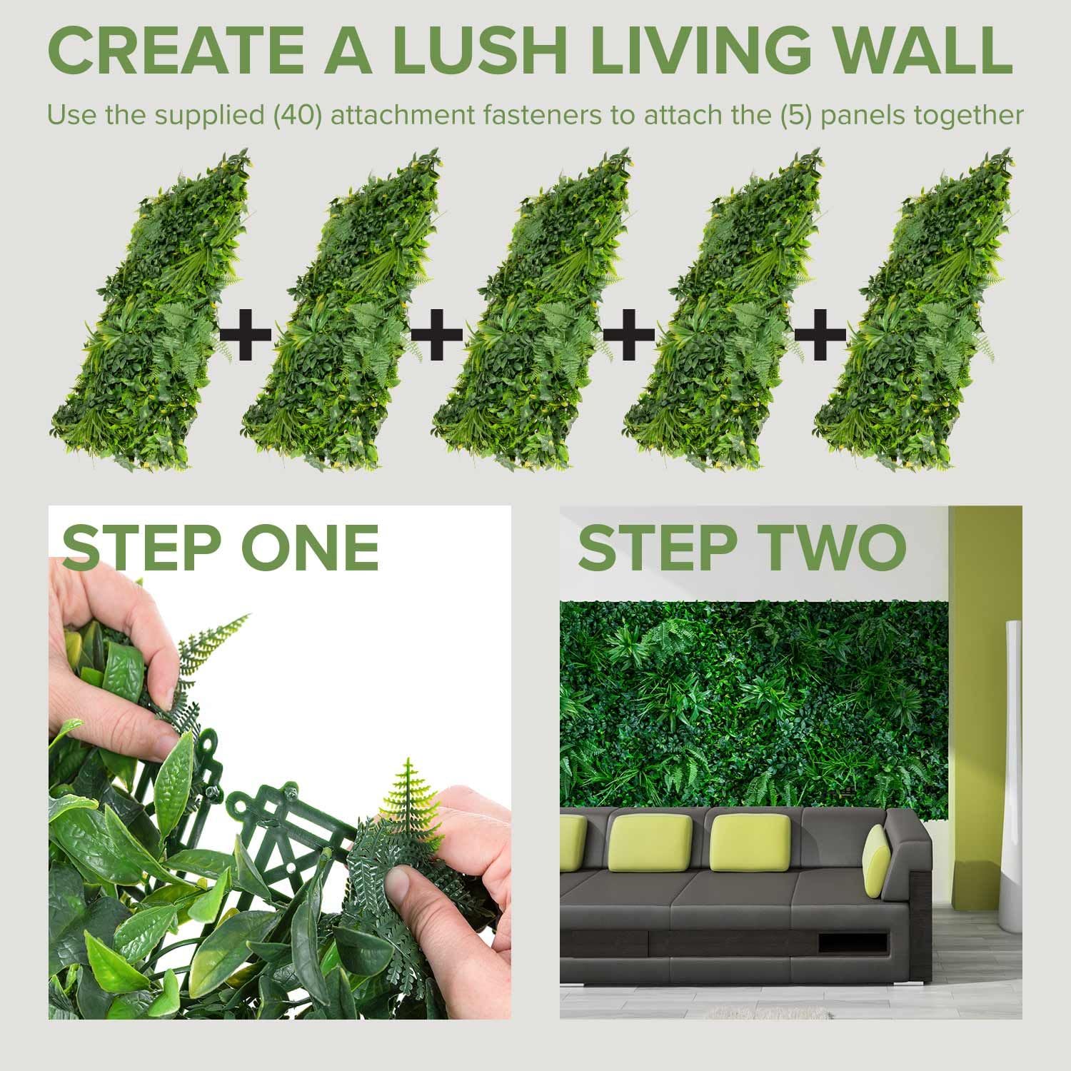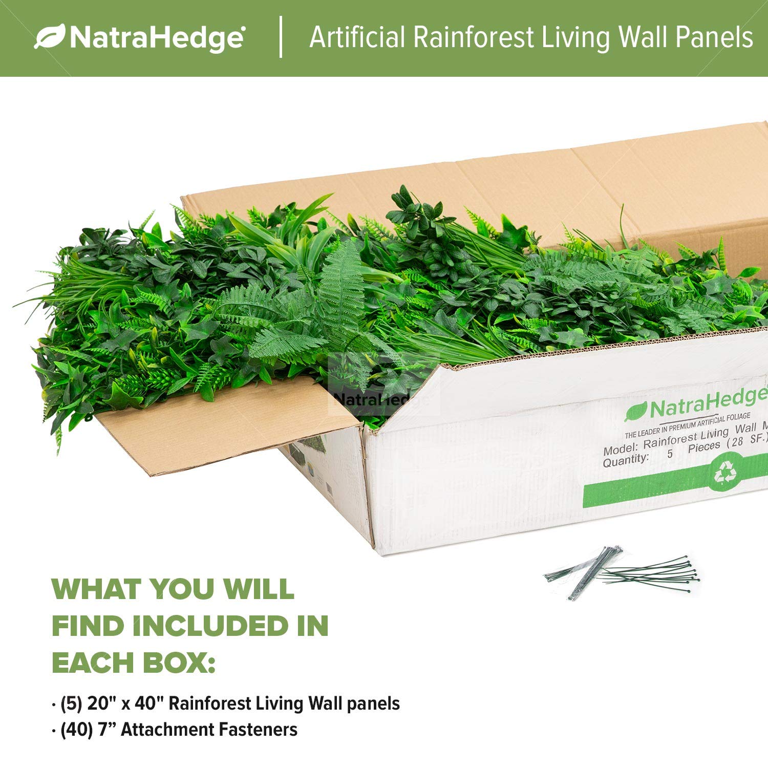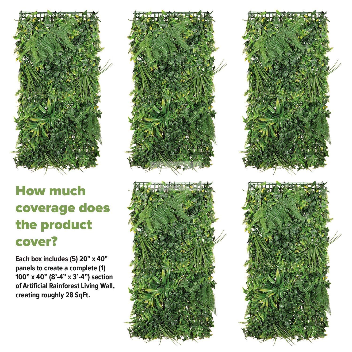 ✔️ PRODUCT DIMENSION – the NatraHedge Faux Rainforest Living Wall panel comes with (5) 40-in tall x 20-in wide hedge roll that covers 28-SQF