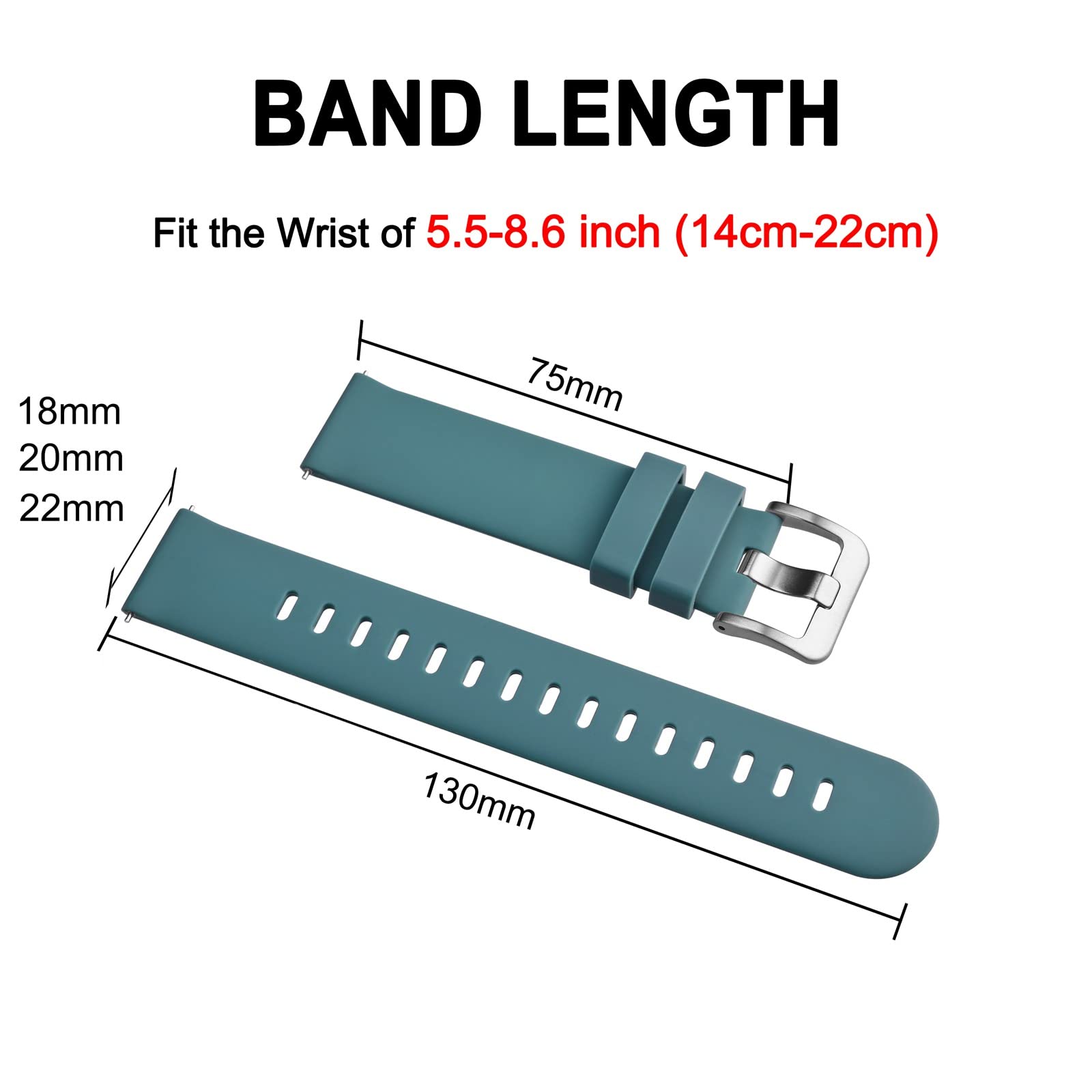 Breathable Holes: Slim watch strap is designed with 15 breathable holes to improve airflow and comfort, and it can be adjusted to best length that fit for your wrist perfectly, suitable for the wrist of 5.5-8.6 inches (14cm-22cm)