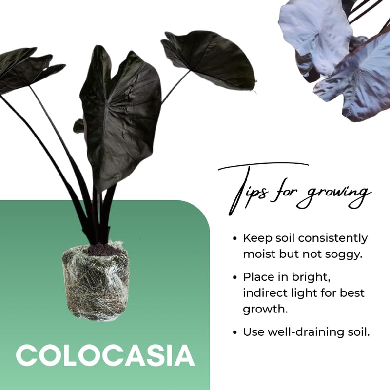Colocasia Esculenta, Colocasia Live Plant, Elephant Ears Live Plant, Esculenta Taro Live Houseplant, 5-8 Inc Tall, No Pot (Black Coral Colocasia)