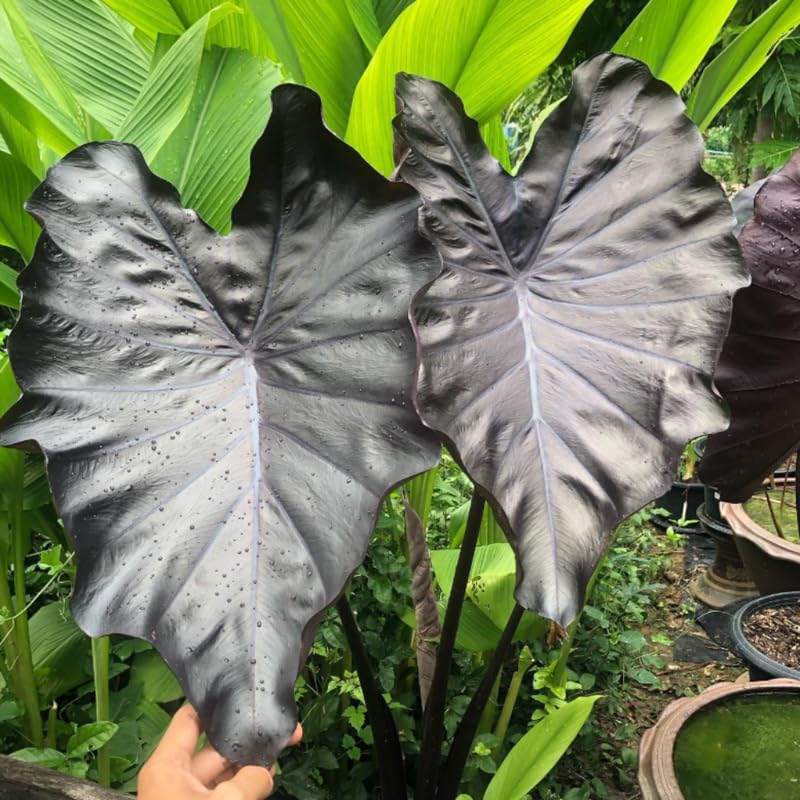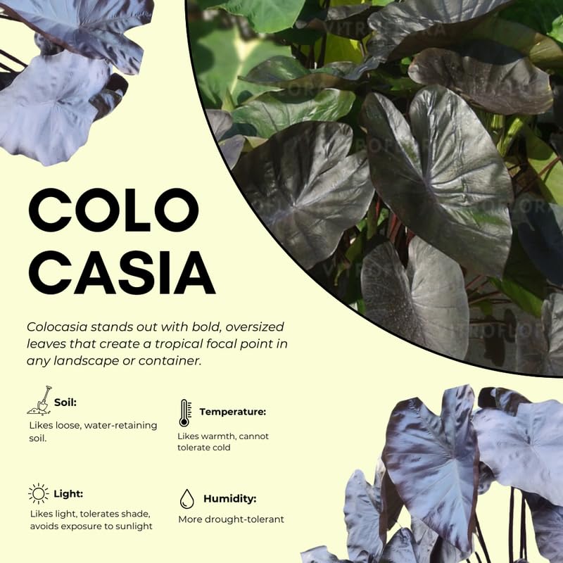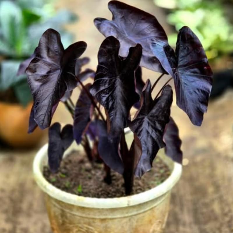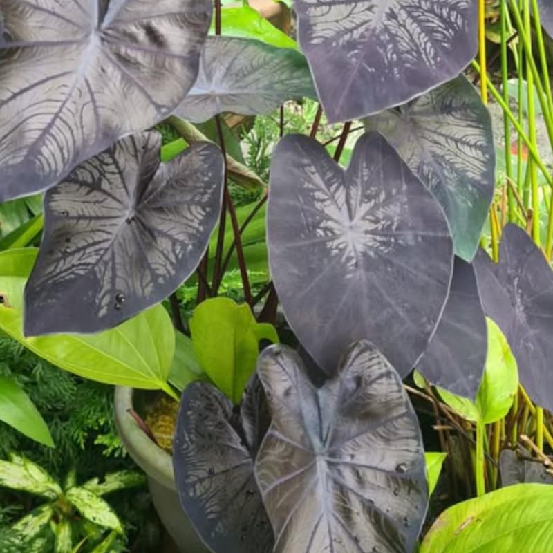 Bold foliage display: Colocasia Esculenta features large heart-shaped leaves, adding tropical style to indoor or outdoor areas year-round