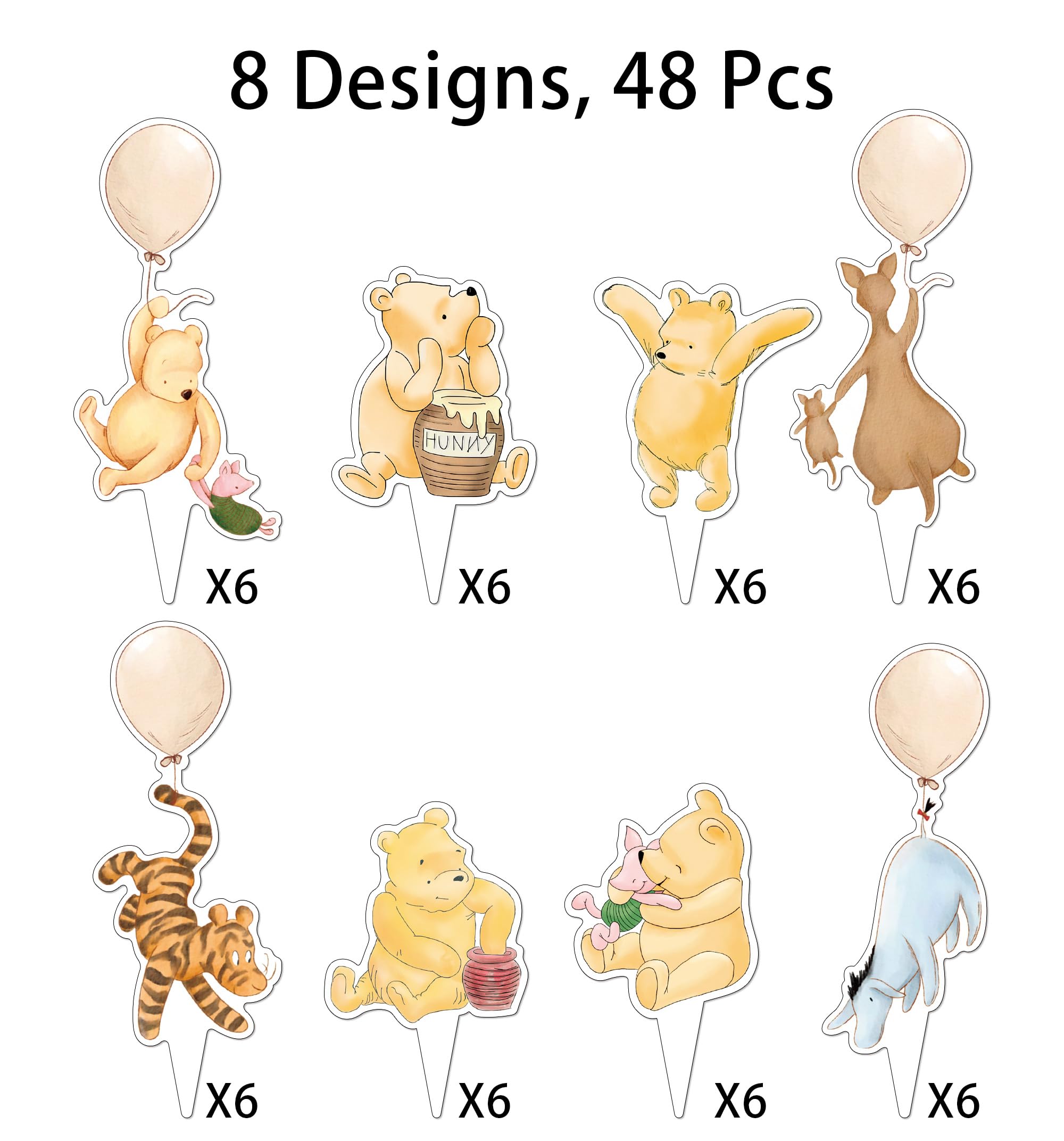 Package Included: You will get 48pcs winnie cupcake toppers. 8 styles, make your birthday party more popular