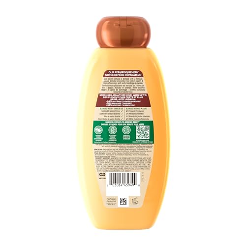 Our creamy, lush repairing shampoo for damaged hair, blooms with a delicious fragrance of royal jelly, honey & propolis, bringing to life our wholesome care that strengthens hair and helps prevent split ends & breakage.* Paraben-free, enriched with a natural blend, gentle for everyday use. (*When using the Garnier Whole Blends Repairing system of shampoo & conditioner.)