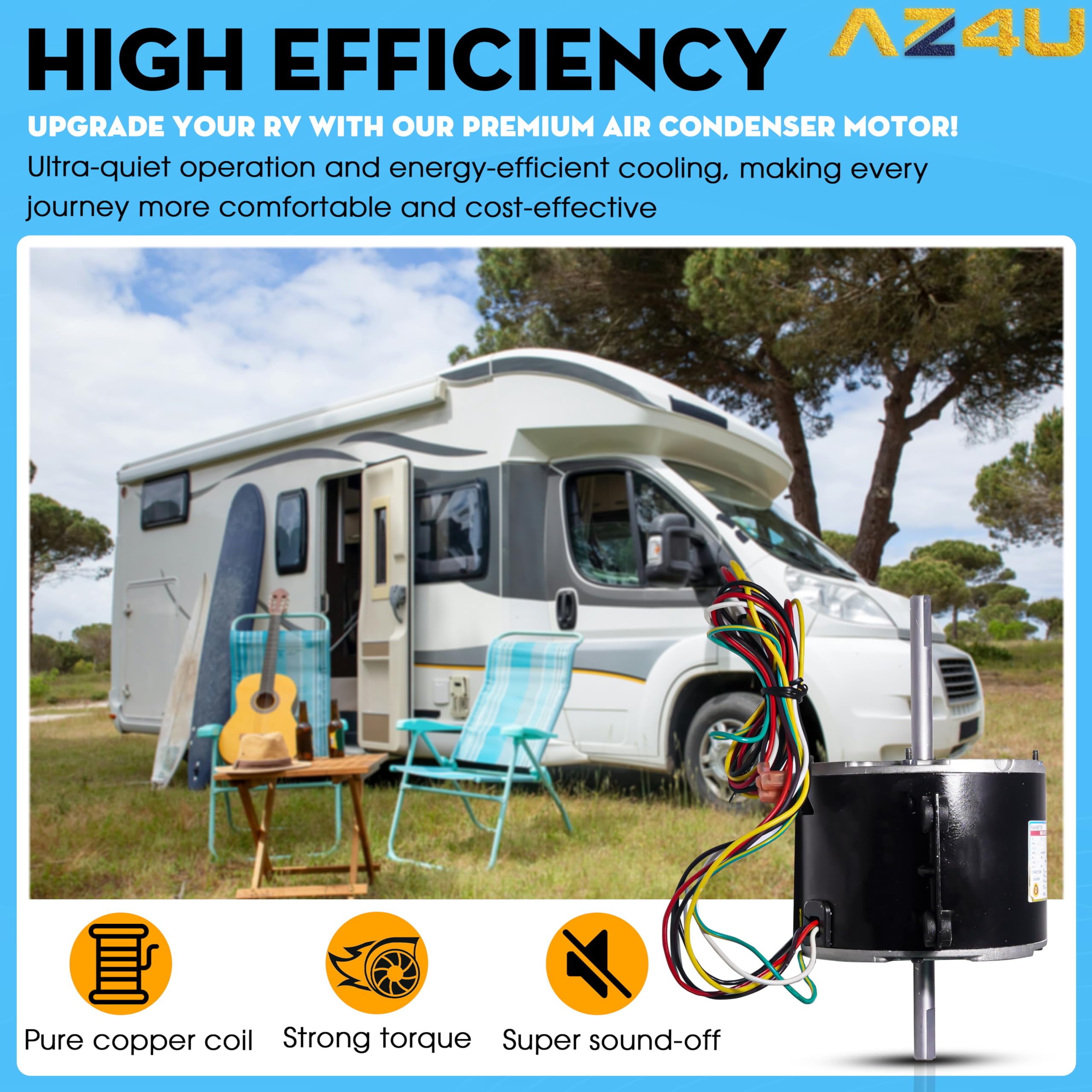 ✔️3315332.005 Fan Motor is an replacement fan motor for Genteq F48AF70A61 Fan Motor and for dometic brisk air 2 fan motor. This ac fan motor replacement powers the fan and blower wheel that moves air through the RV's air conditioning system. The RV air conditioner motor is responsible for generating the force required to move the air through the air conditioning system. This rv ac fan motor replacement is designed to operate at high speeds for extended periods of time and is built to withstand the harsh conditions of RV travel.