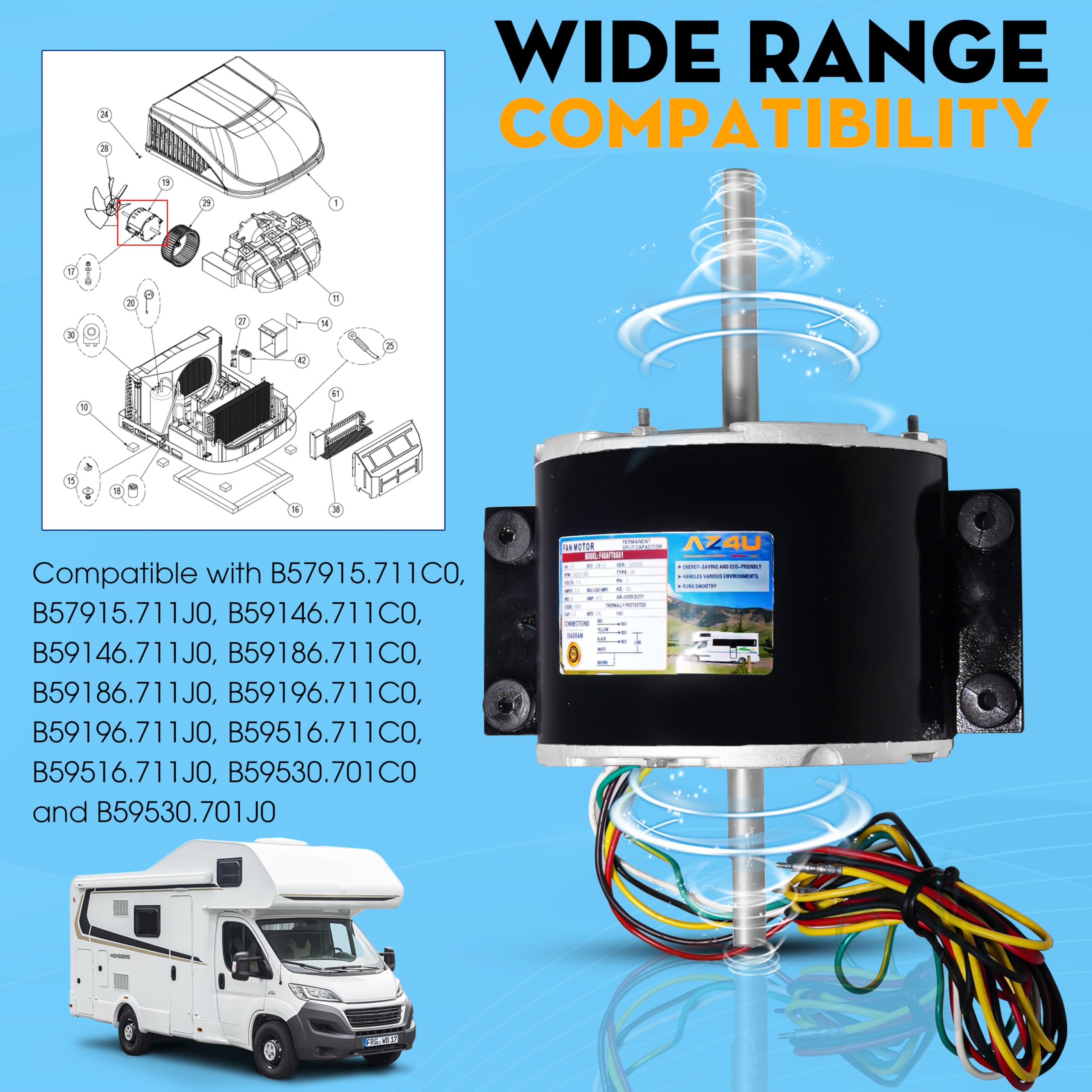 ✔️Package includes: 1x F48AF70A61 fan motor + 1x 5/370 (uF/V) Capacitor Compatible with dometic ac fan motor, dometic 3315332.005 fan motor, dometic brisk 2 models: B57915.711C0, B57915.711J0, B59146.711C0, B59146.711J0, B59186.711C0, B59186.711J0, B59196.711C0, B59196.711J0, B59516.711C0, B59516.711J0, B59530.701C0 and B59530.701J0
