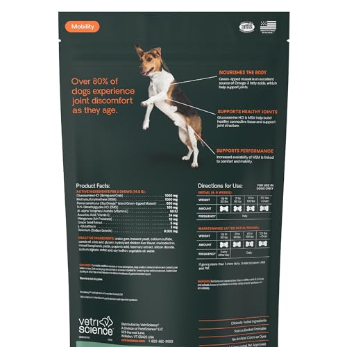 VET-FORMULATED & CLINICALLY TESTED: This extra strength hip & joint supplement for dogs is developed by veterinarians and has been clinically proven to increase hind-leg, mobility, and joint function in dogs by up to 41% in just 4 weeks. Ideal for senior dogs, large breeds, working dogs, and pets needing advanced joint support backed by science.