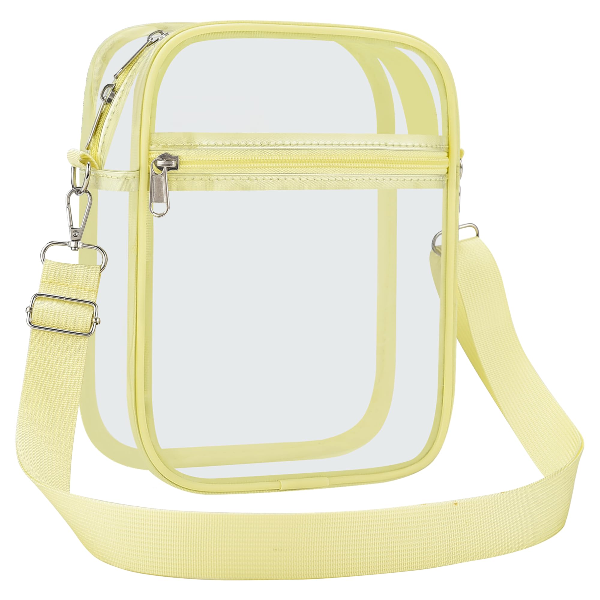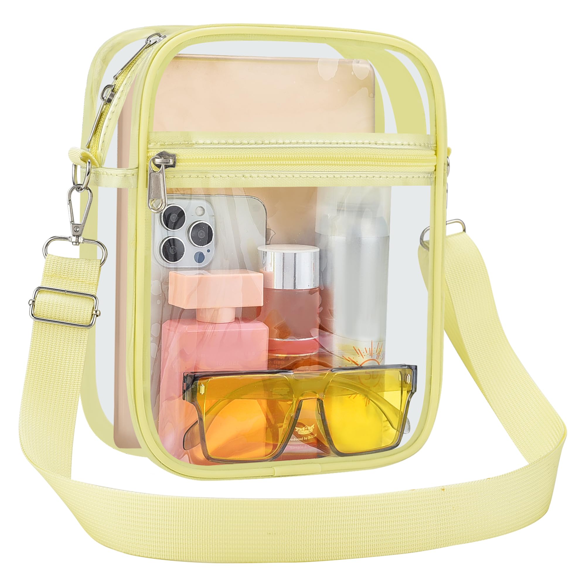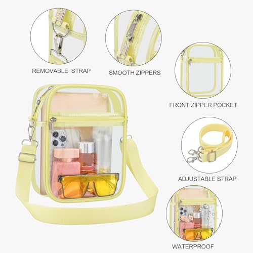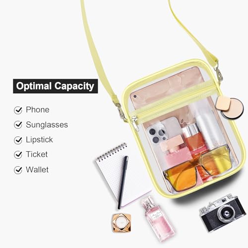 【Suitable Capacity】One main compartment can hold a small wallet, phone, lipstick, pen, tissues, and sunglasses, while the front pocket can hold keys, cash, cards, and tickets, making our clear bag an essential for your concert outfit.