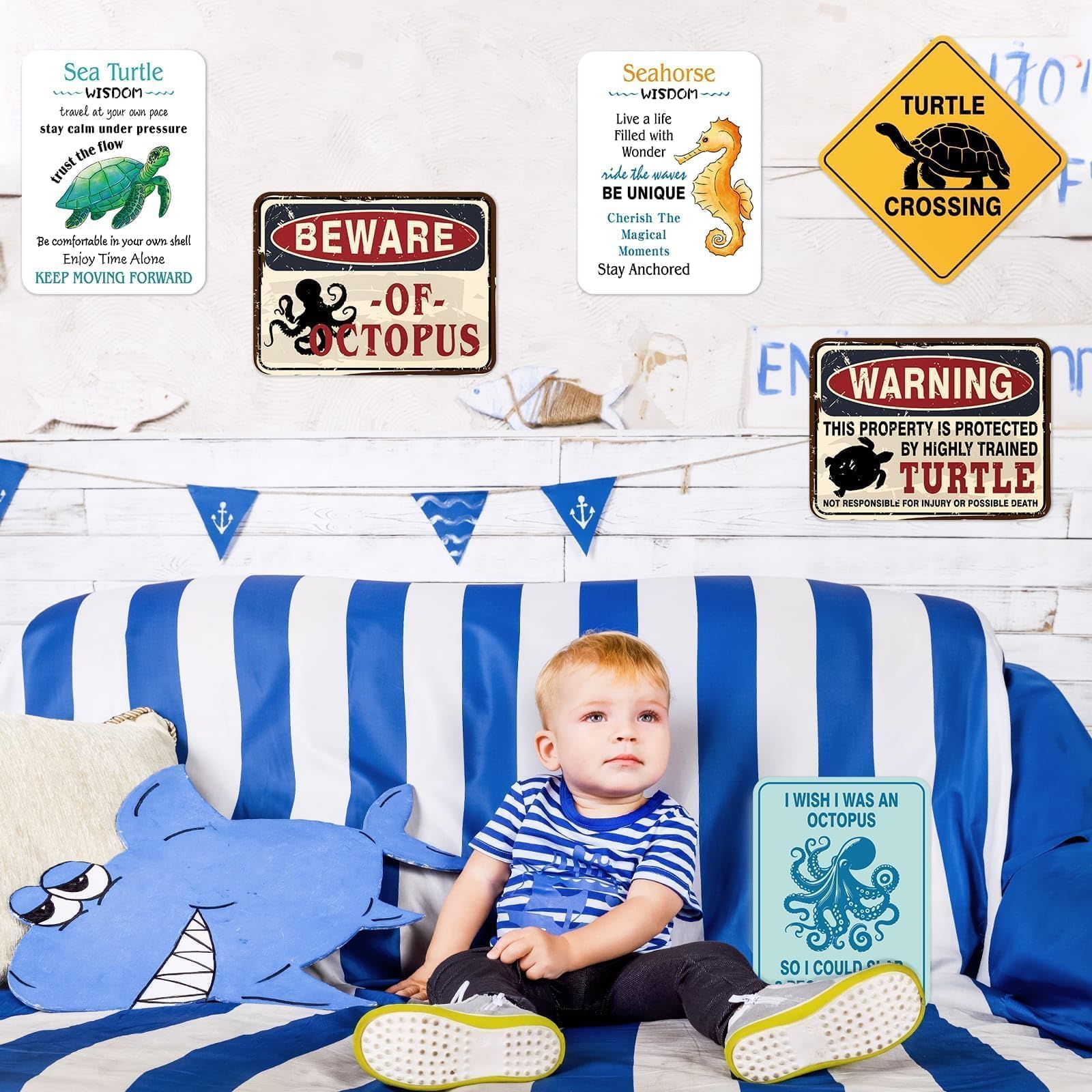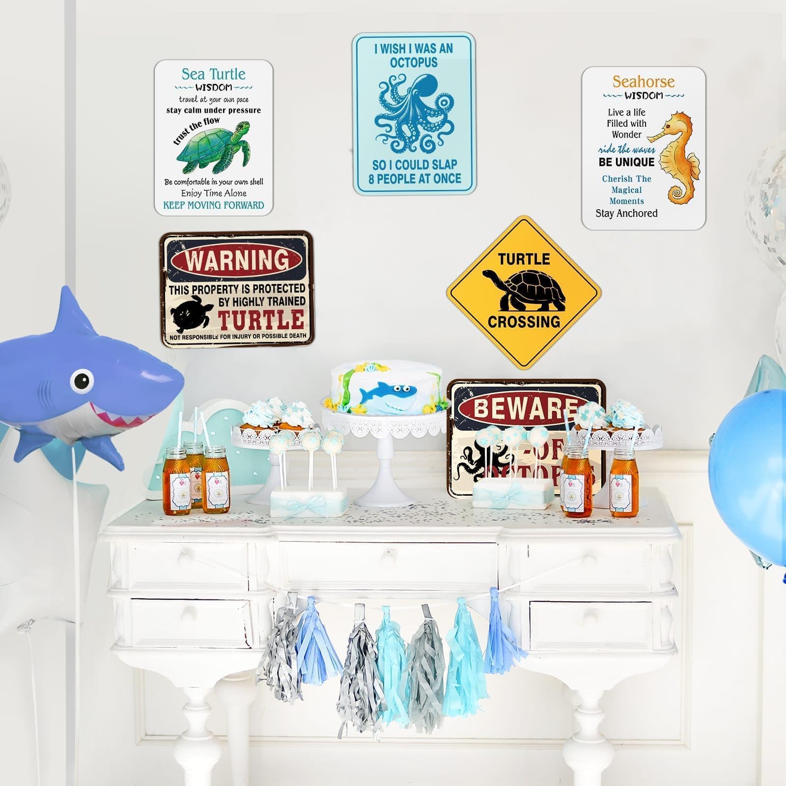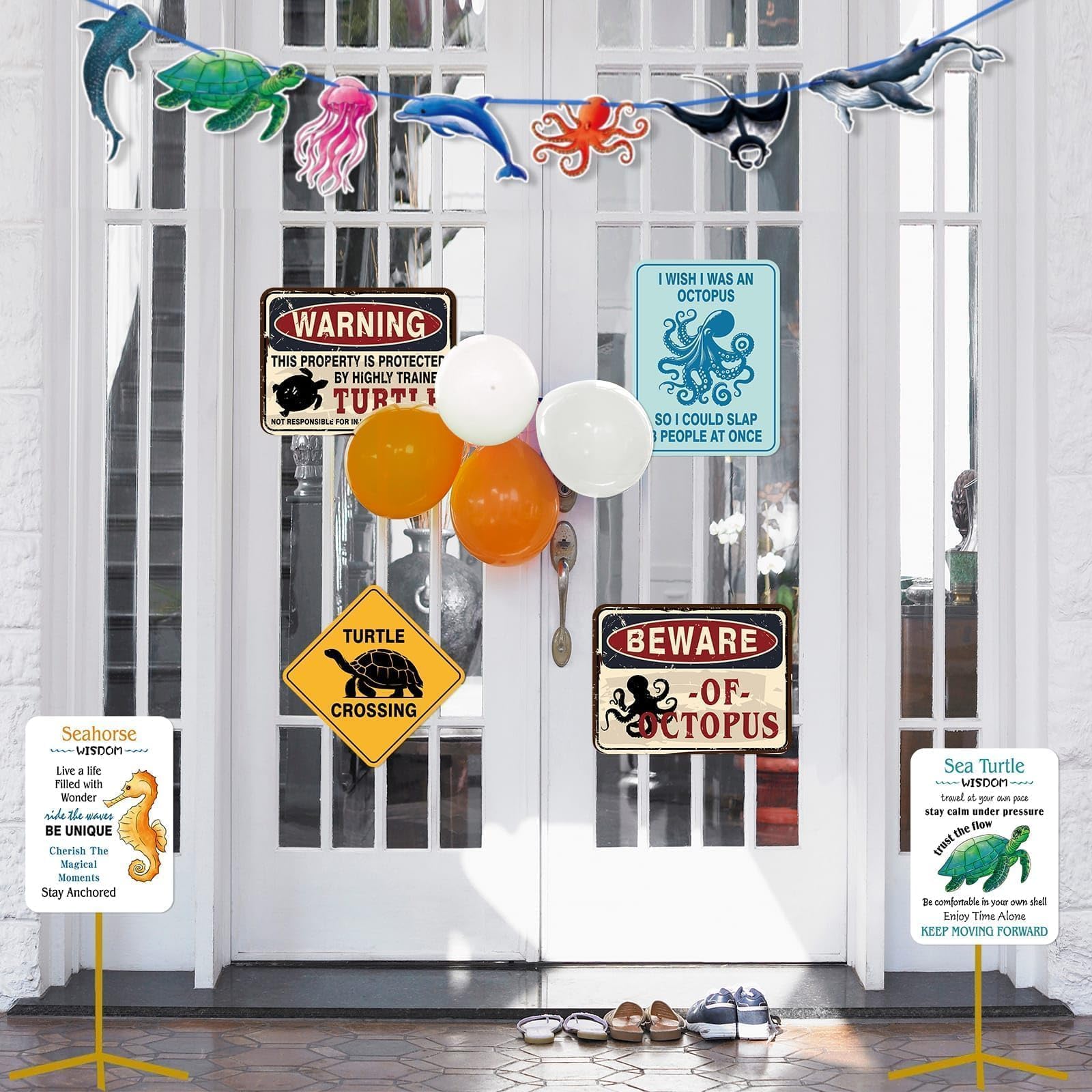 【PACKAGE INCLUDES】 - There are 6 pcs ocean party decoration banner sign in different styles to meet your party needs. Stimulate your imagination with the ocean animal birthday wall decoration