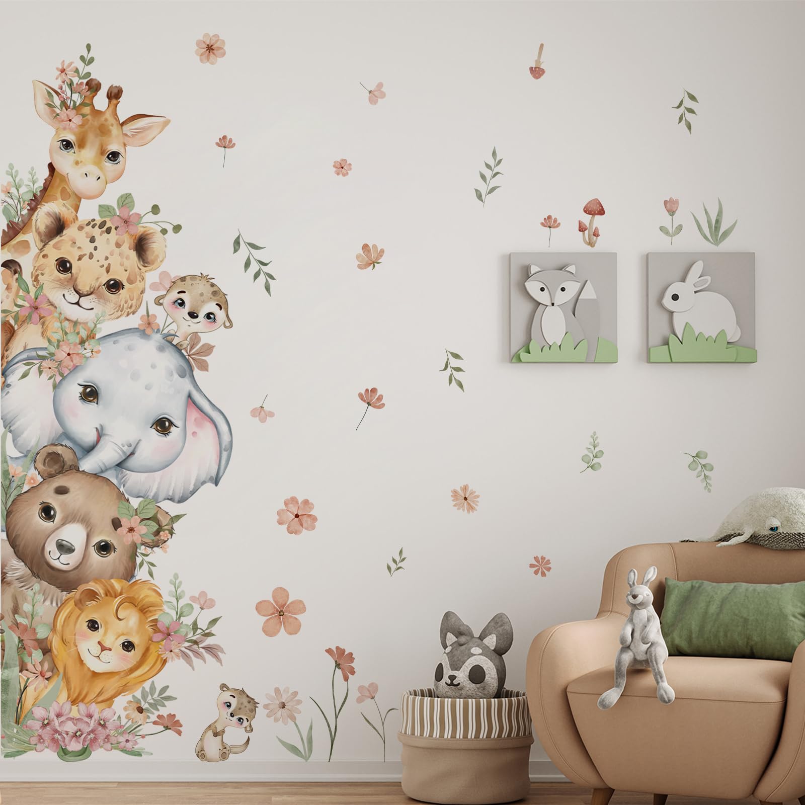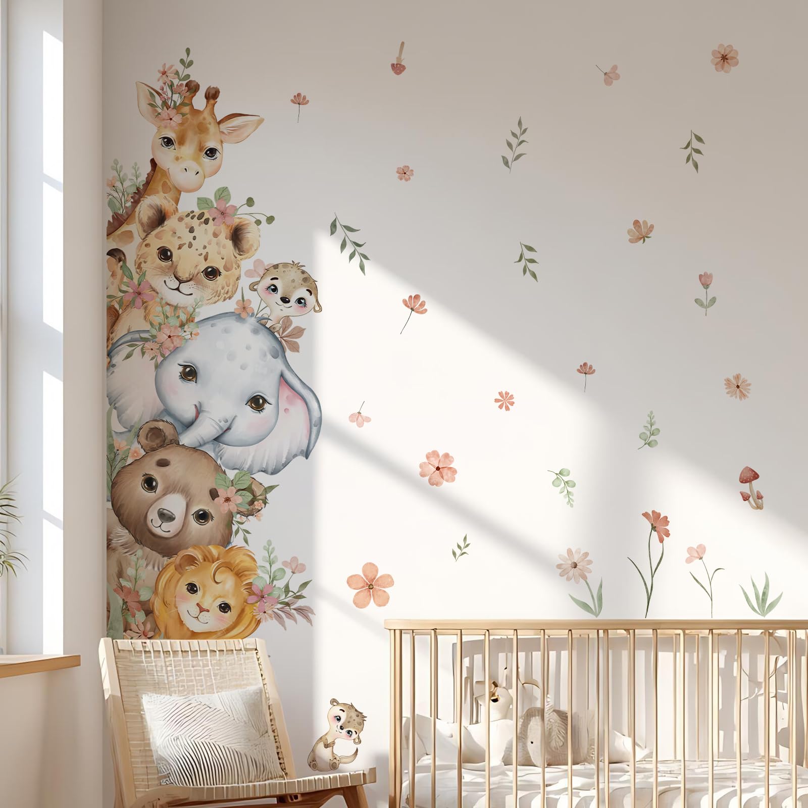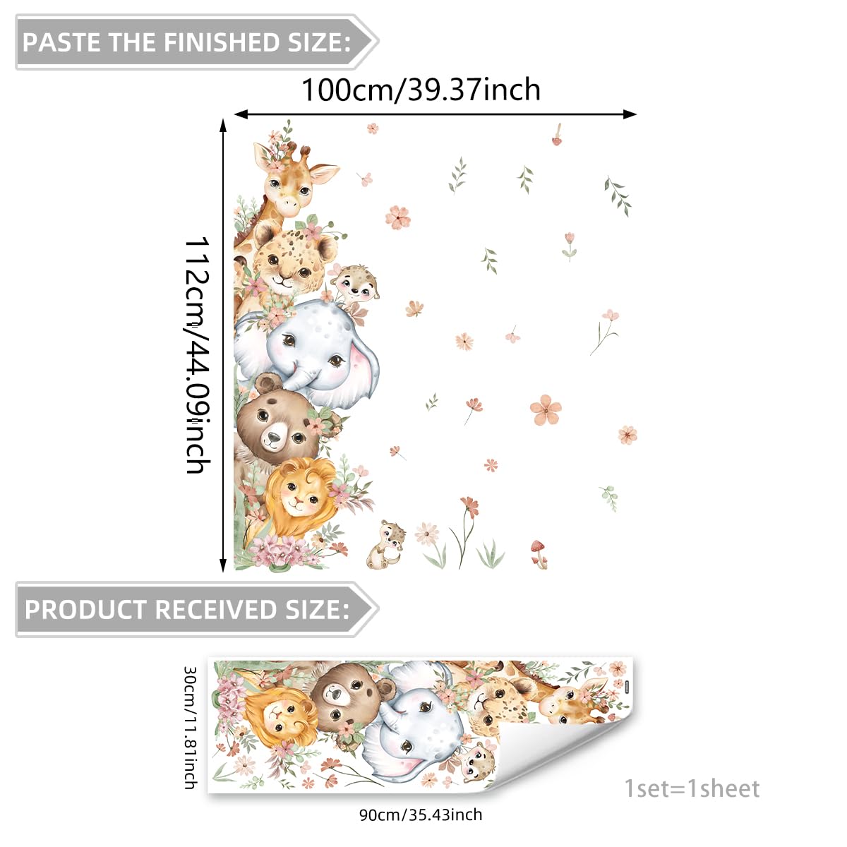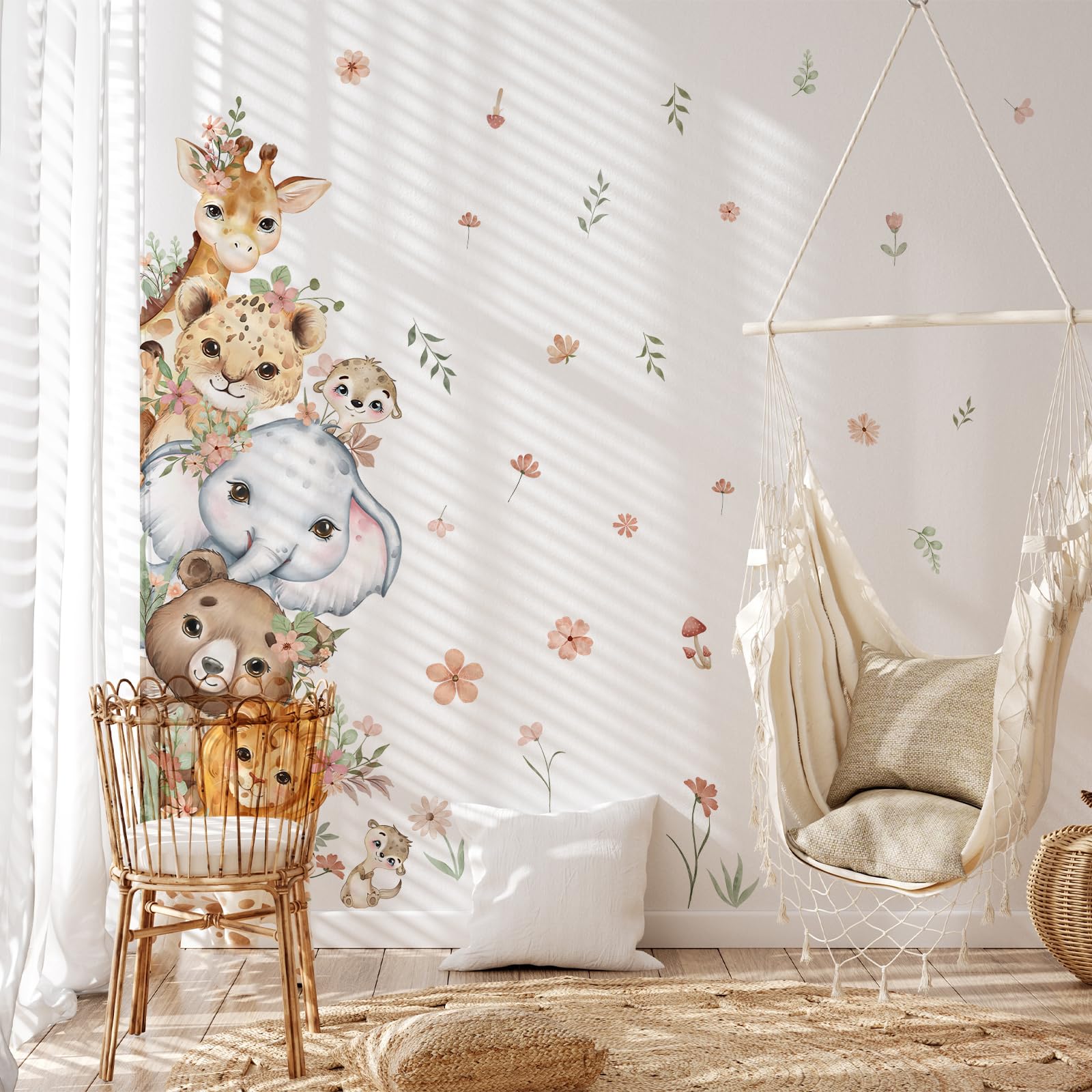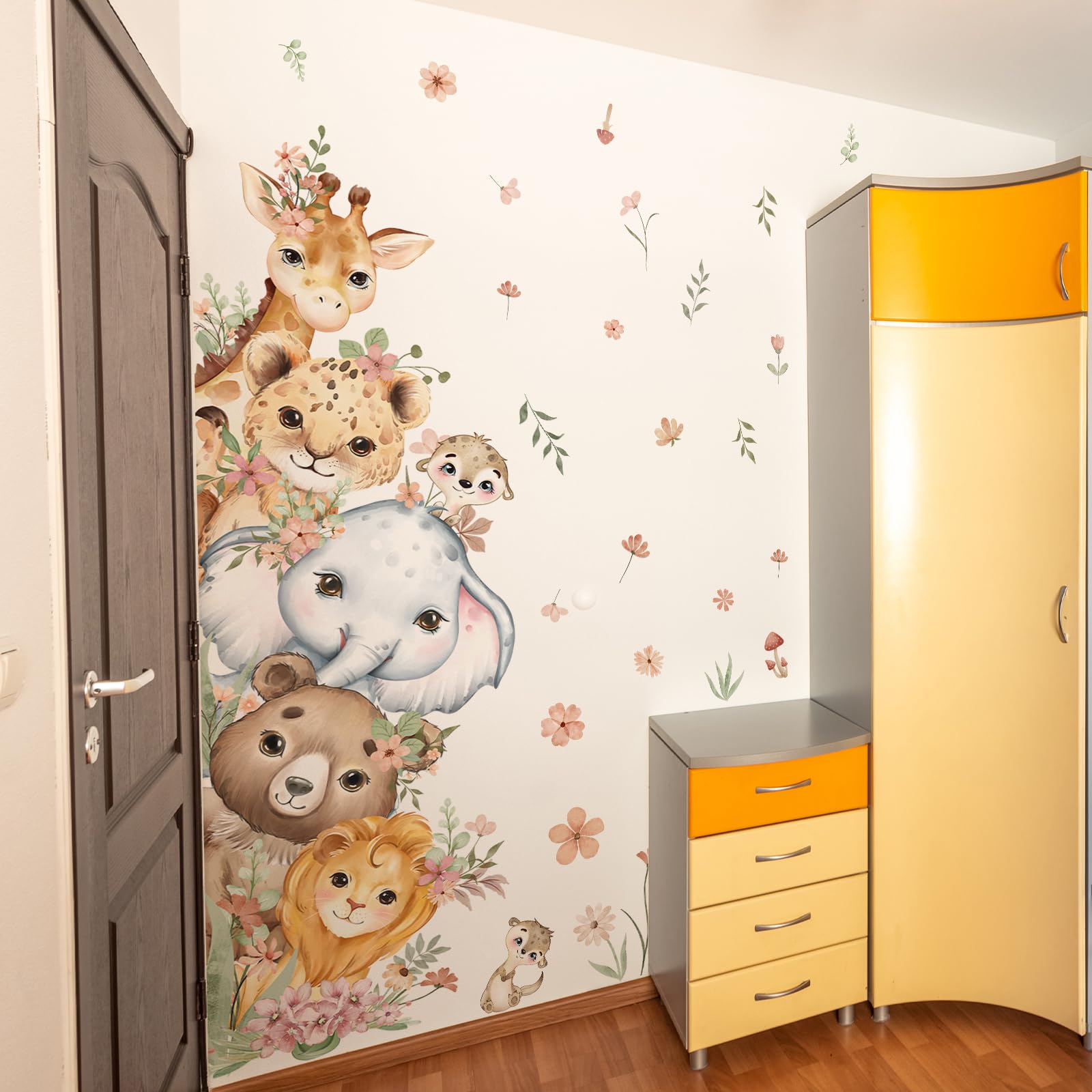 Package Contents: The complete set includes 1 full-sized watercolor animal-themed door sticker featuring adorable creatures like giraffes, elephants, lions, and bears, adorned with delicate floral branches and foliage. Designed to cover an entire door, it instantly refreshes your door in one simple step.