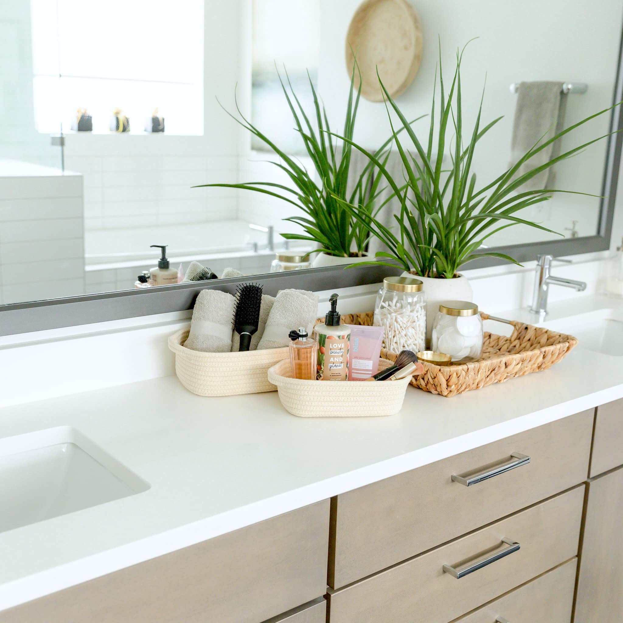 DOUBLE REINFORCED & SCRATCH-FREE DESIGN: When you’re a full-time mom or dad, you need a storage solution that works just as hard as you do. With reinforced stitching on the handles and base, our woven storage basket set is ready to tackle some heavy-duty actions and will sustain the roughest toddler play. With our soft yet firm handwoven rope basket designs, you’ll never have to worry about scratches or marks being left on your coffee table, shelf, front door table, nightstand or any tabletop.