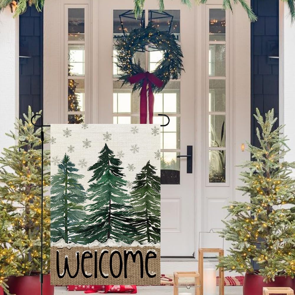 Festive Holiday Design: Our Christmas garden flag features a classic Winter Christmas scene with snowflakes, Christmas trees, and a cheerful holiday message—perfect for adding a joyful touch to any outdoor space