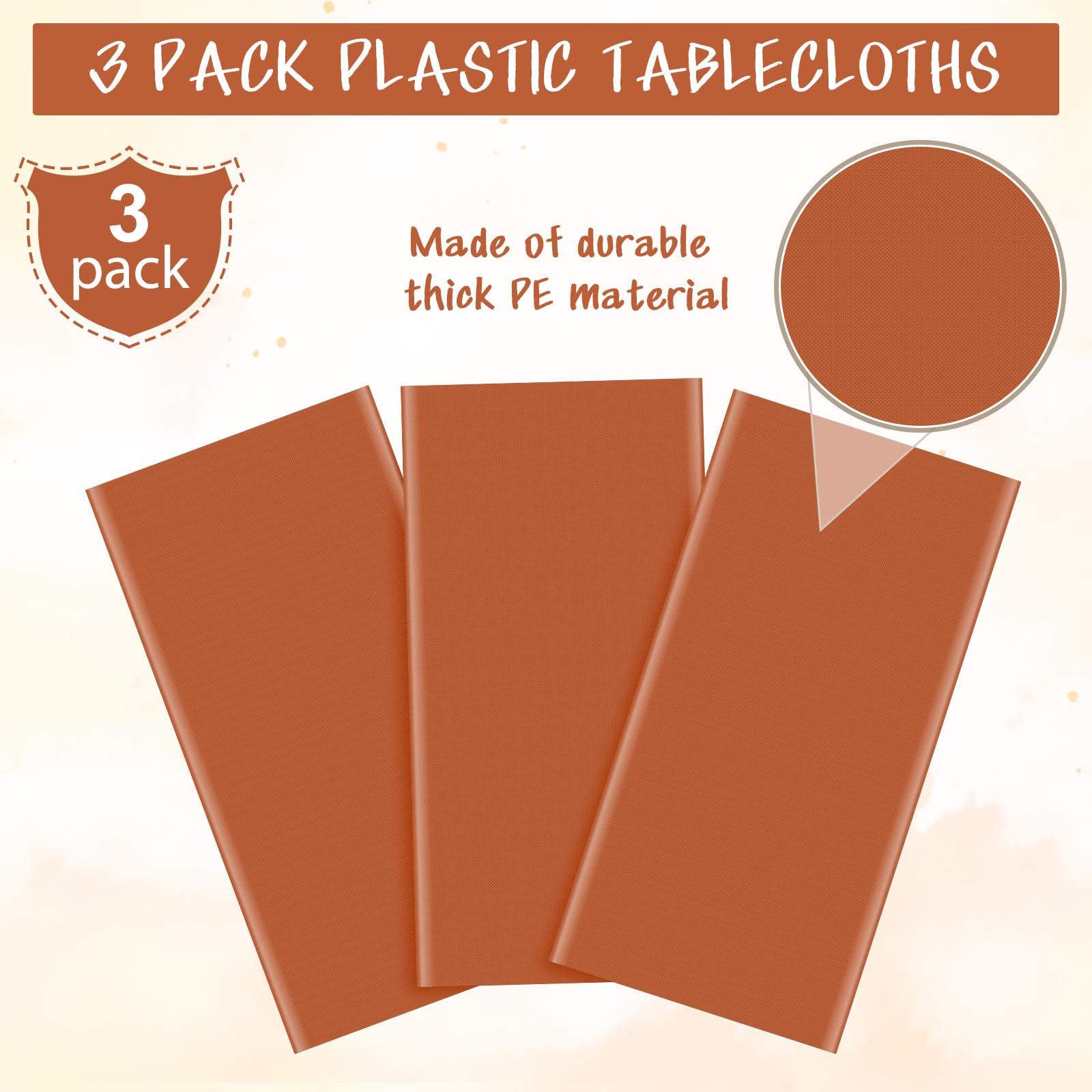 Packing Include: you will receive 3 pieces of plastic orange table cloth disposable for rectangle tables in beige,this orange disposable tablecloth each measures 54×108 inches,which fits for most rectangle tables of 8-10 seats,sufficient quantities can meet your use and replacement needs.