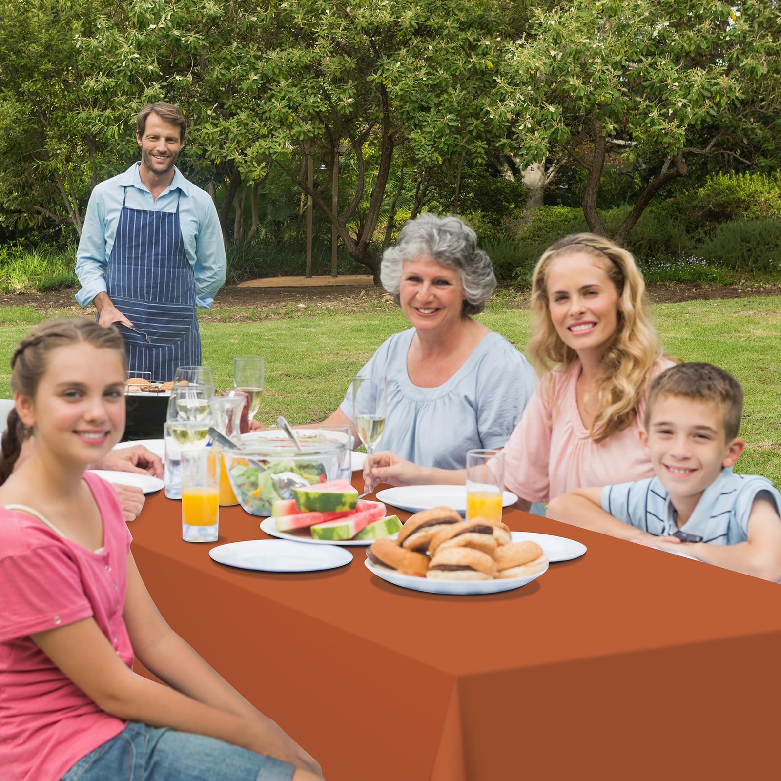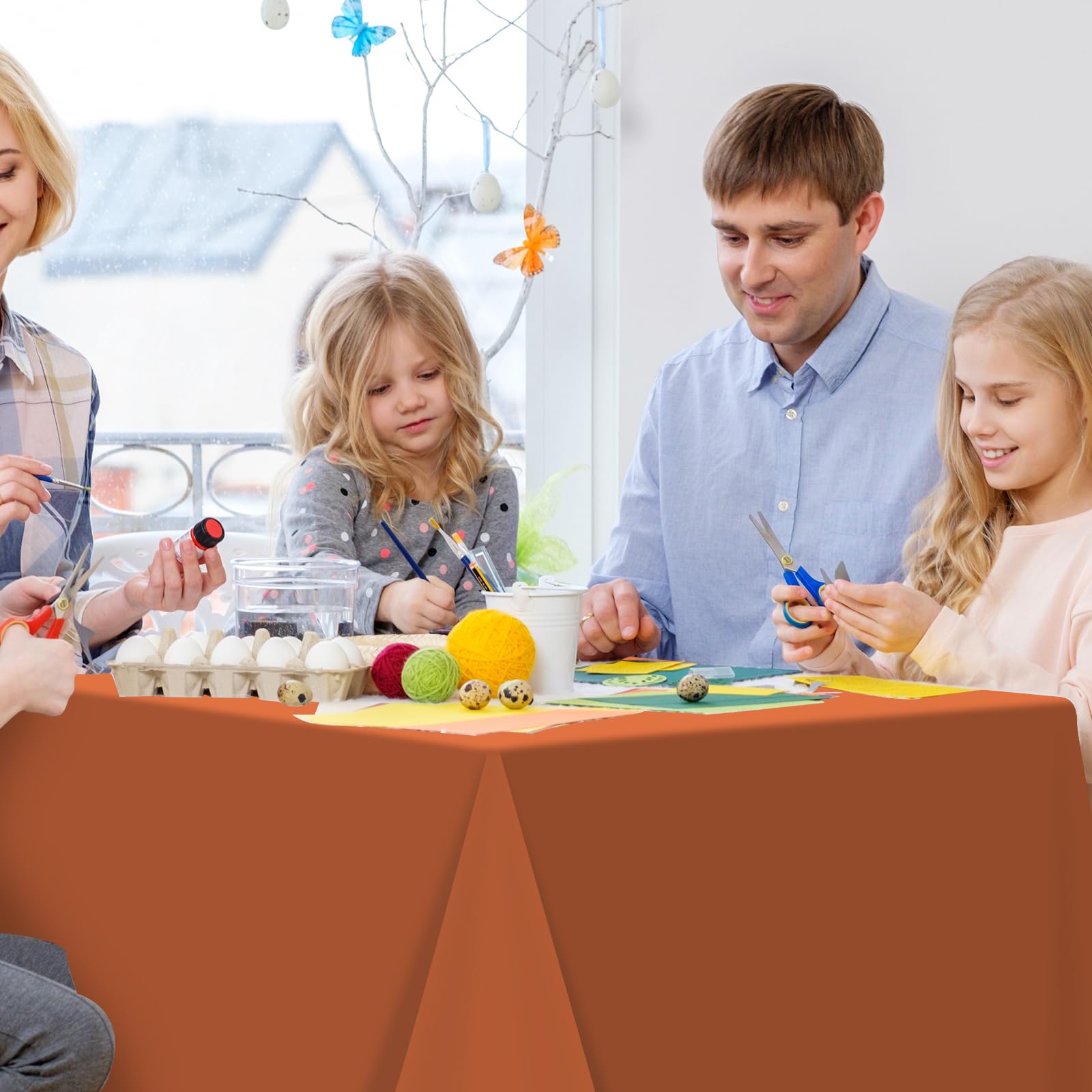 Easy to Use: you just need to unfold these orange plastic tablecloths up on table then you can use it,and these burnt orange plastic disposable tablecloth are waterproof,if it gets dirty,you can clean it with cloth or paper easily.or you can throw it directly after your party,no need to worry about cleaning up.