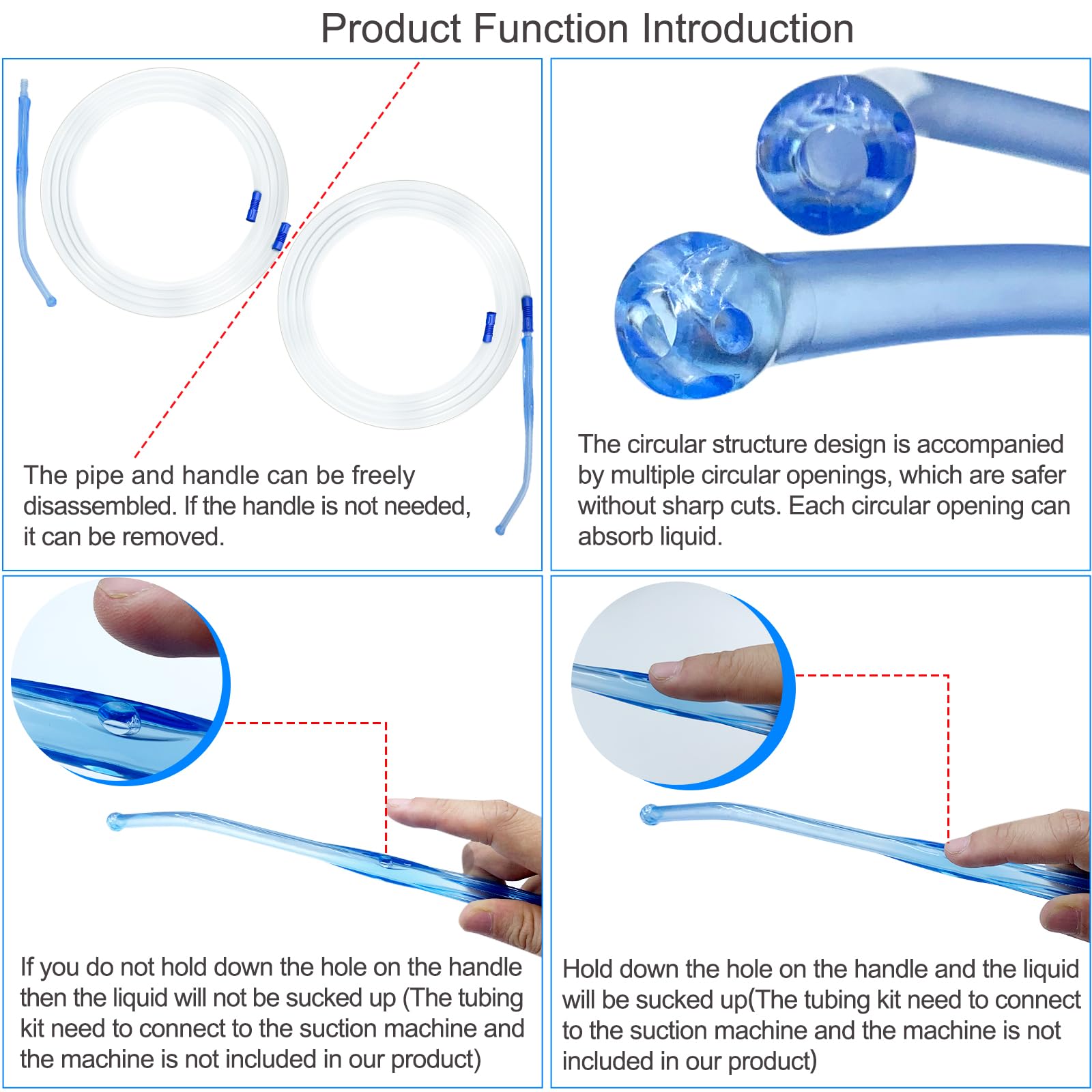 【porous end design,Efficient absorption】There are multiple suction holes designed in various directions at the circular end, which is conducive to suction from all directions.And there is a suction valve hole on the handle for your control needing.