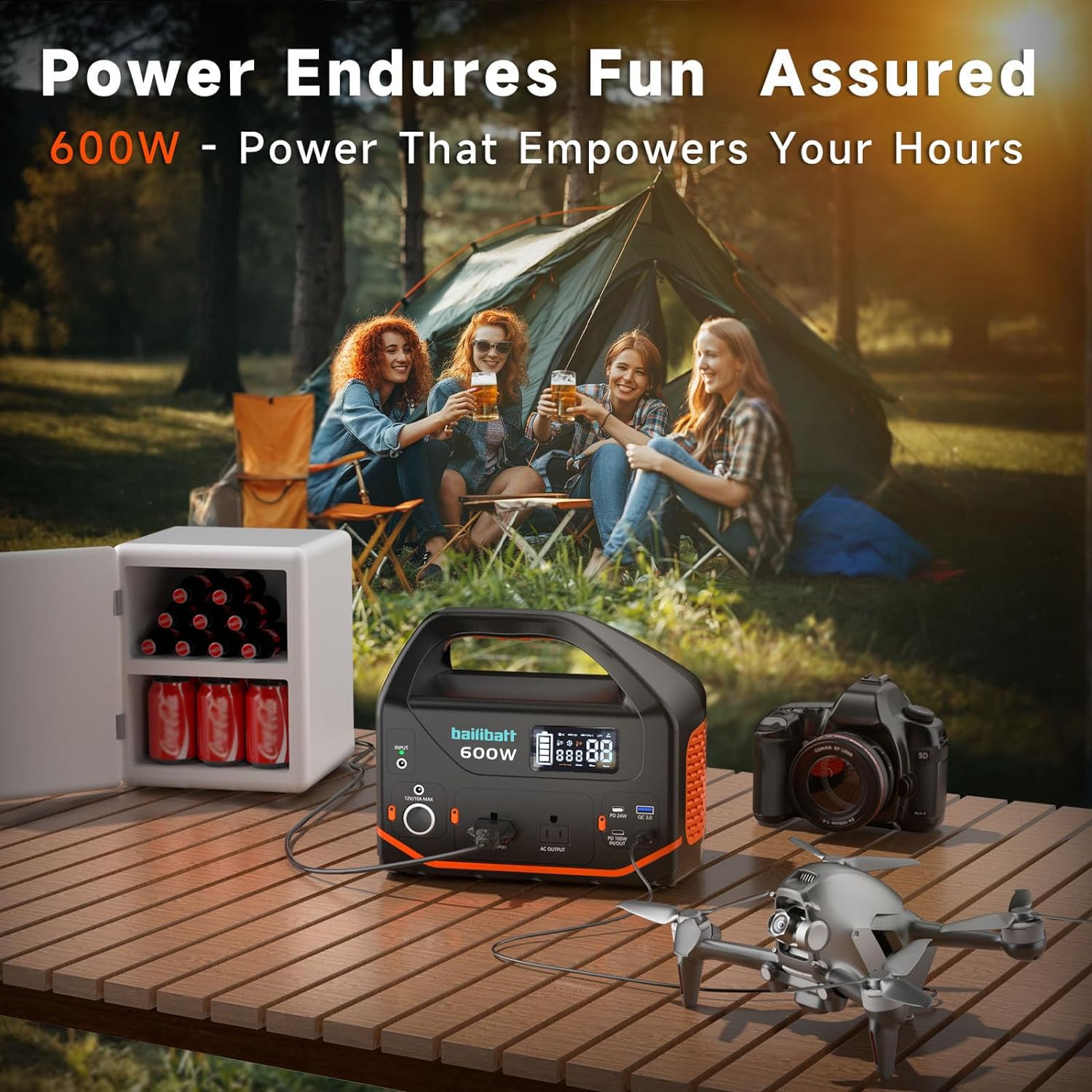 The 600W Portable Power Station from bailibatt : provides fast, safe and reliable portable generators with 600W Pure Sine Wave AC output(1200W surge), it enables most daily-use appliances (up to 600W) to operate. (the total of all combined devices < 600 watts)