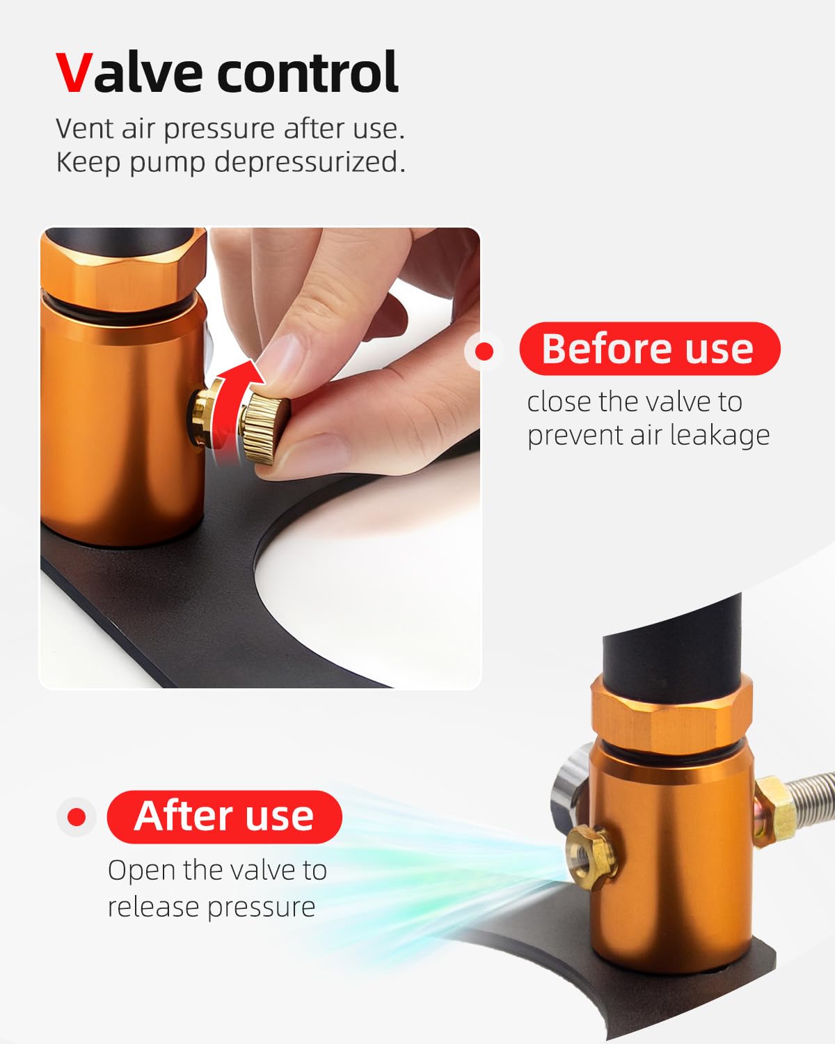 Built-In Precision Pressure Gauge: Equipped with an accurate pressure gauge for real-time monitoring, allowing users to safely achieve desired pressure levels without over-inflation or guesswork.