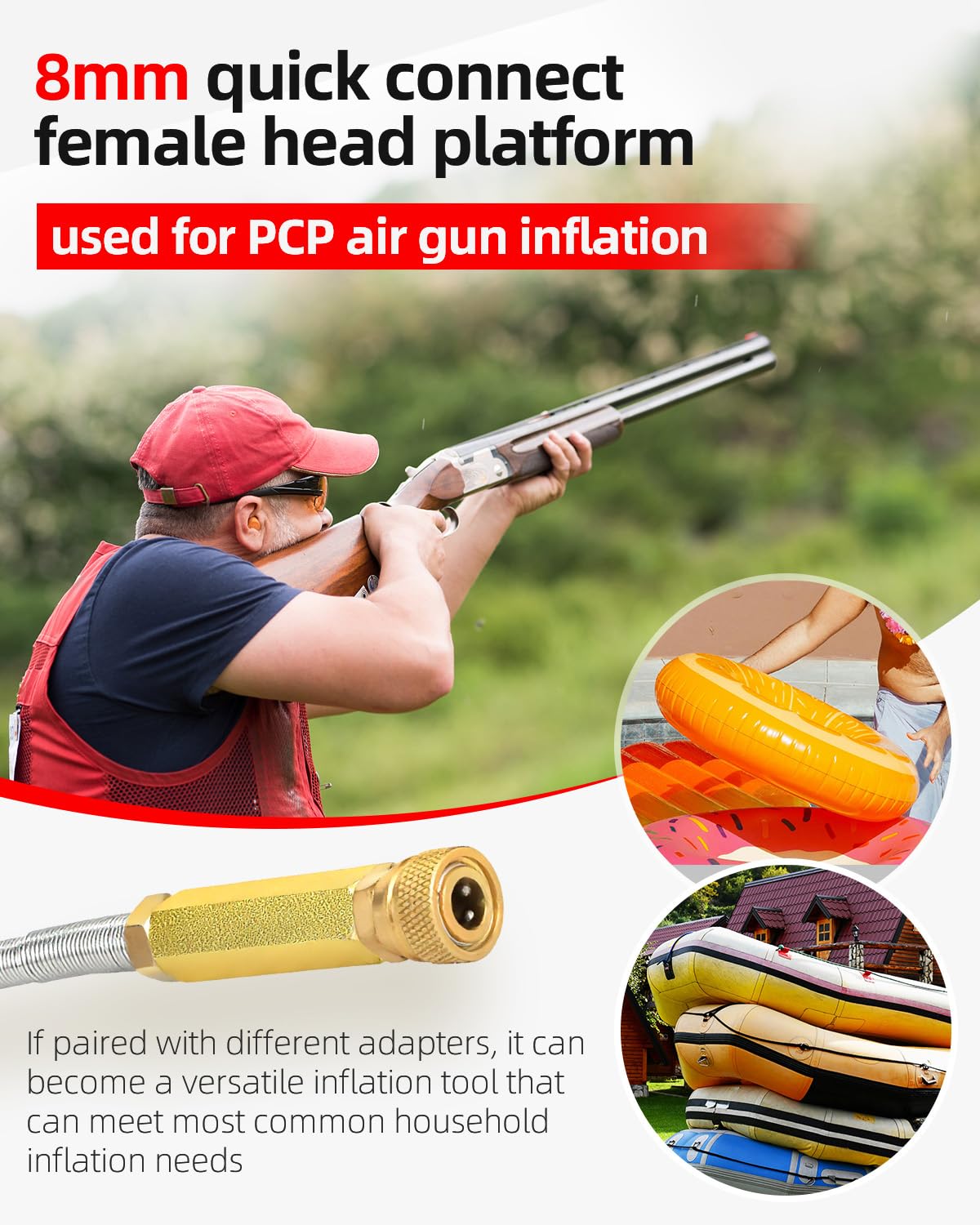 Professional 4500 PSI High-Pressure Output: Delivers ultra-high pressure up to 4500 PSI, equipped with 8mm quick connect female connector and car connector,making it ideal for filling high-pressure air rifles, PCP air guns, scuba tanks, and other demanding applications with ease and reliability.