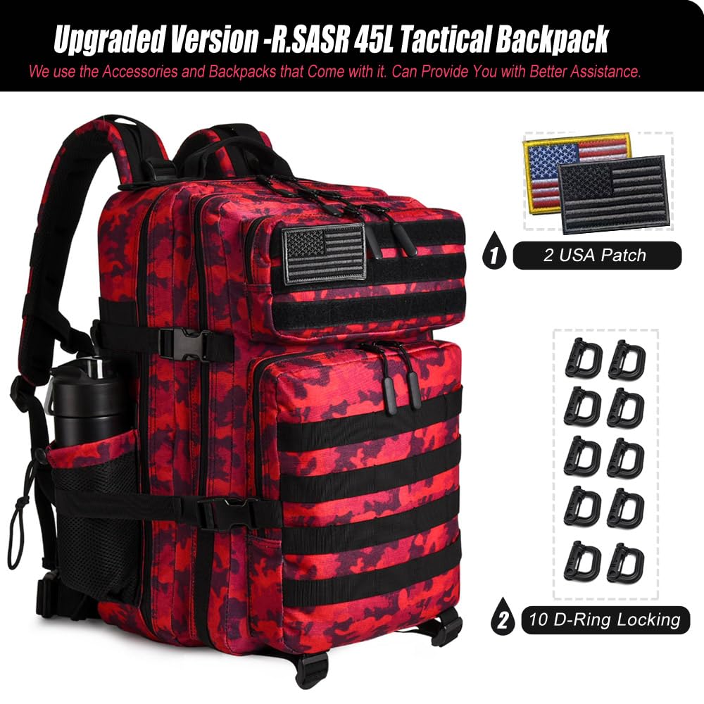 This Military Tactical Backpack is Equipped with 10 D-Rings to Make it Easy for you to Hang the Accessories of the Backpack. Tactical Backpack Size Appro: 13inch x 20inch x 13inch Dimensions and Appropriately Sized 40L Capacity, This Pack has Room for all of Your Essential Gear.