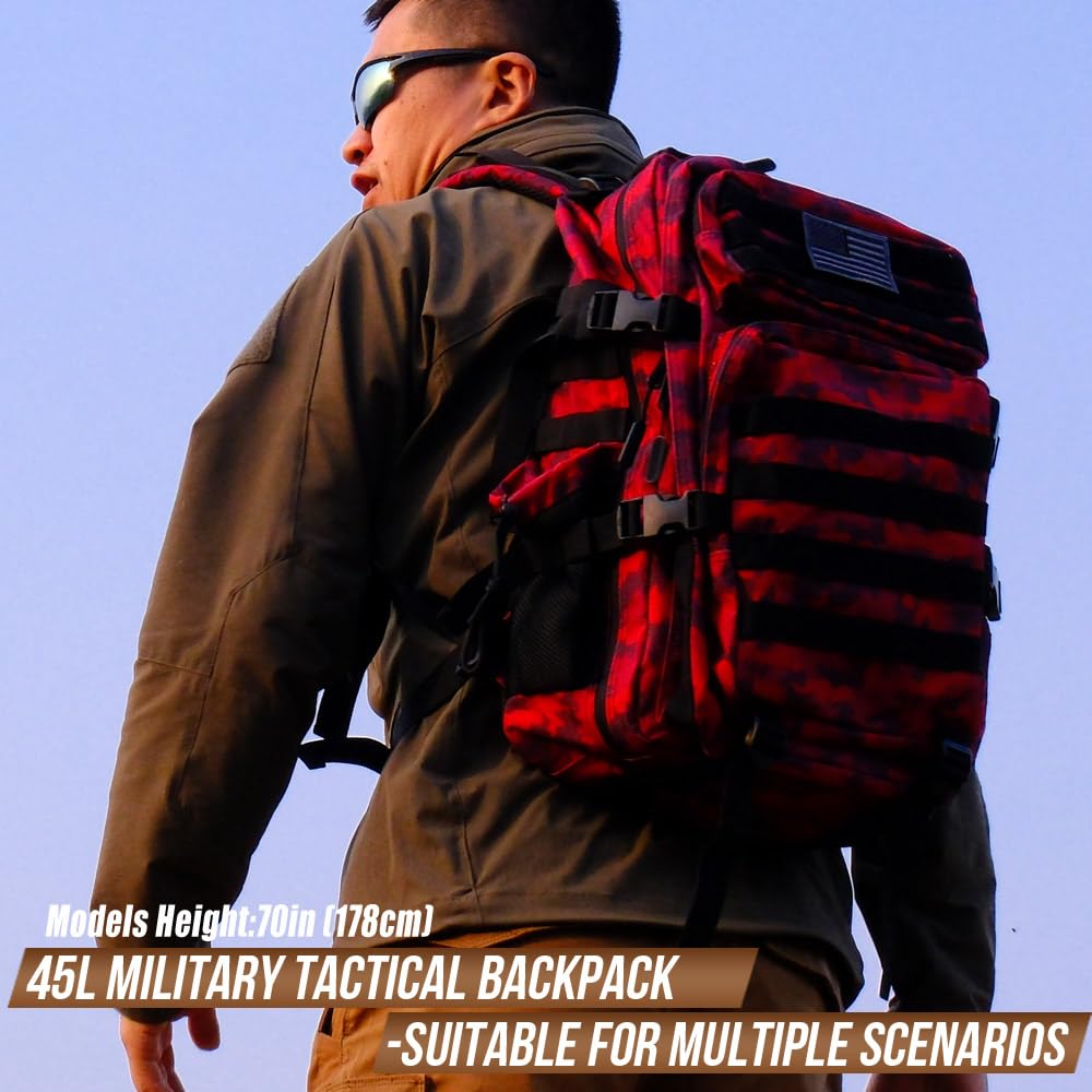 This Tactical Backpack Molle tactical backpack has molle system, Molle webbing throughout for attaching additional tactical pouches or gear.MilitaryTactical backpack with double-stitched, Heavy duty zippers and utility-style cord pulls, Side and front load compression system, mesh padded back area & shoulder strap.