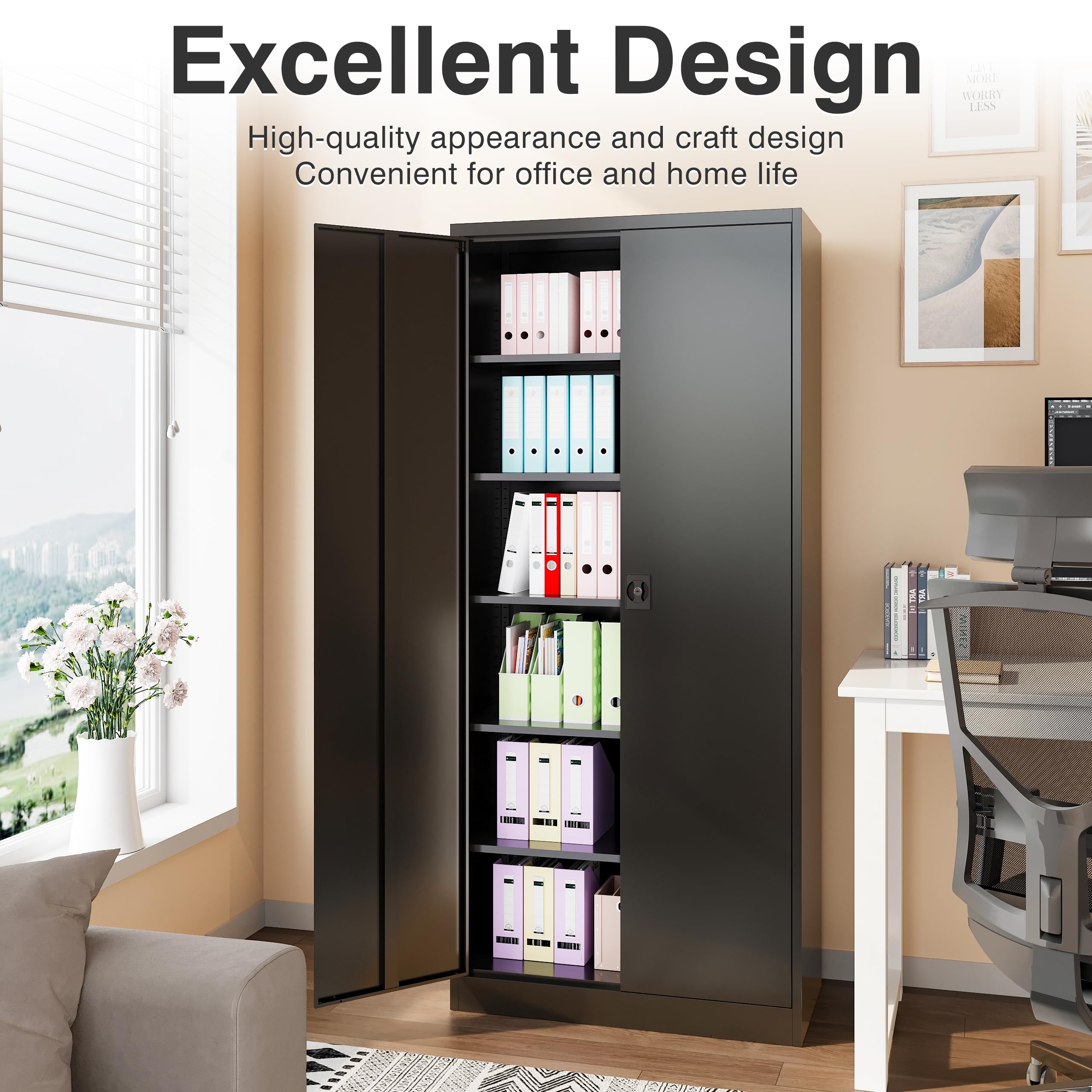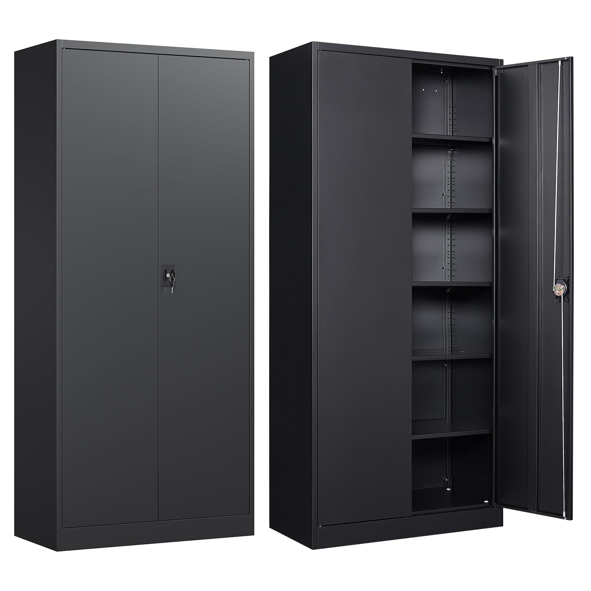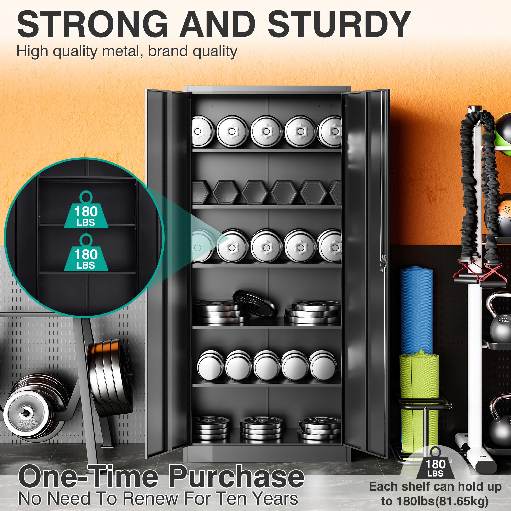 Large Storage Capacity: Large storage cabinet overall size: 70.87 inch×31.5 inch×15.7 inches (H x W x D), total weight: 75 lbs. This metal storage cabinet has a strong and durable metal frame with excellent load-bearing capacity, allowing you to store enough items. Weight Capacity: 900 lbs total, the lockable storage cabinet has 5 adjustable shelves, each shelf holds: 180 lbs