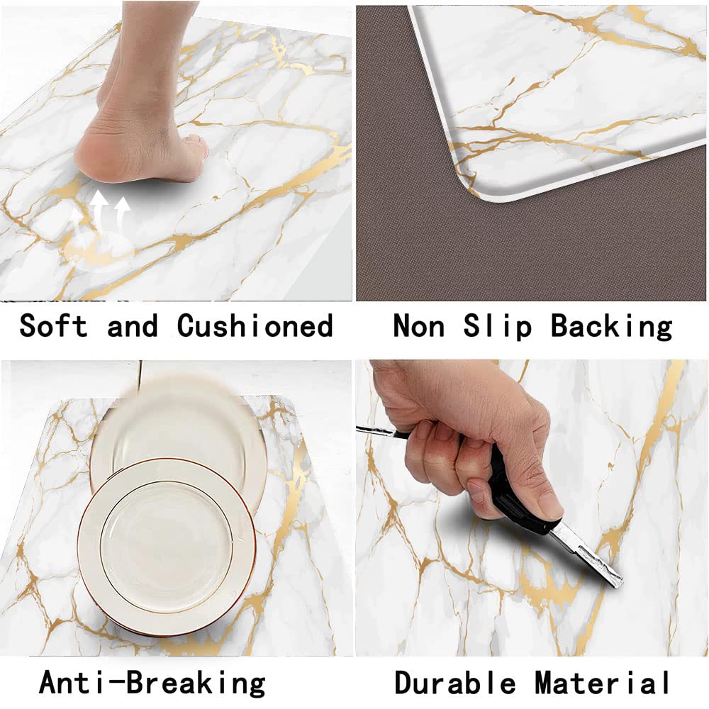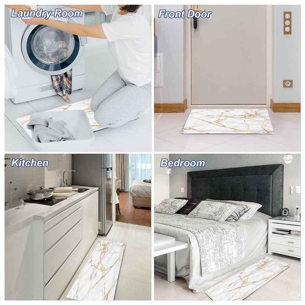 Practical Size and Wide Uses: 17"X29", marble cushioned kitchen rugs set is ideal for kitchen, sink, dining room,bathroom and office.
