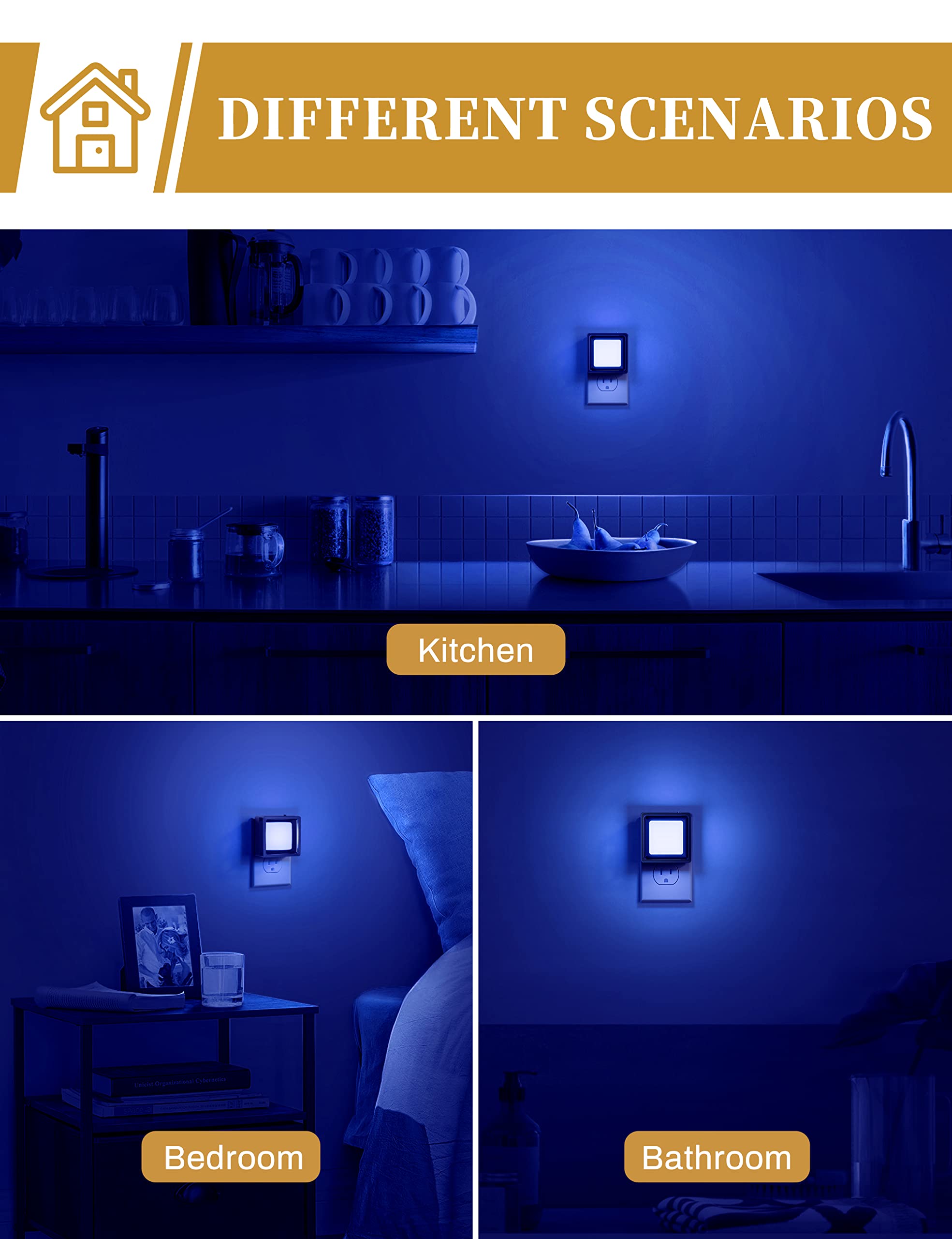 PLUG-IN LED NIGHT LIGHTS: the night light plug in design provides wider brightness in the darkness and gives enough light to guide your way when going to the toilet or getting water in the kitchen at night.