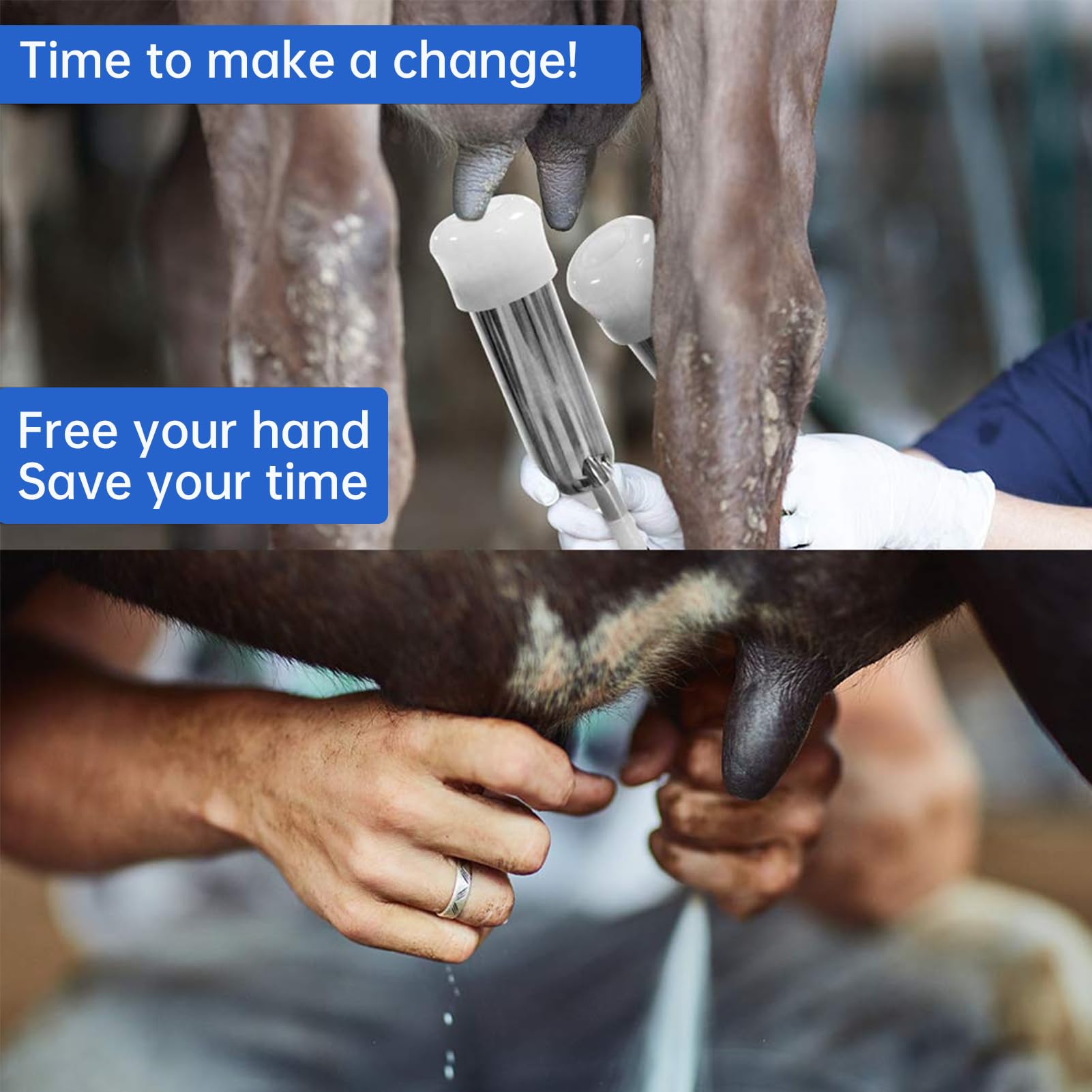 【Easy to Set Up and Clean Up】The Portable Cow Milker can be quickly installed and plugged in for use. It can be easily cleaned with the 2 brushes we gave away, which is convenient for you to clean the milking hose and milk cup after use. No technical experience is required, and anyone can use it easily, even your children can help you complete the milking, which can be used on farms, homes, etc.