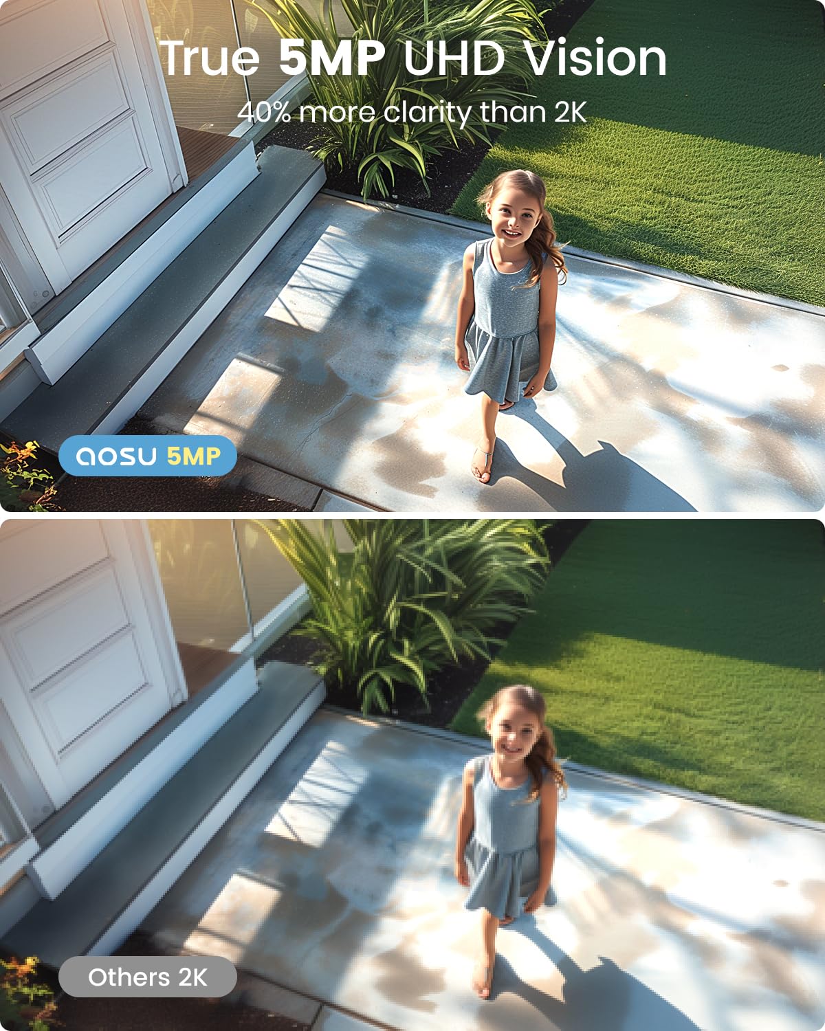 Intelligent Camera-to-Camera Track & Sync: Welcome to smarter security with aosu's system that automatically tracks and syncs events across multiple cameras for effortless review. From front door to garage, from porch to backyard, what happens around your house will be strung together by this home outdoor security camera system.