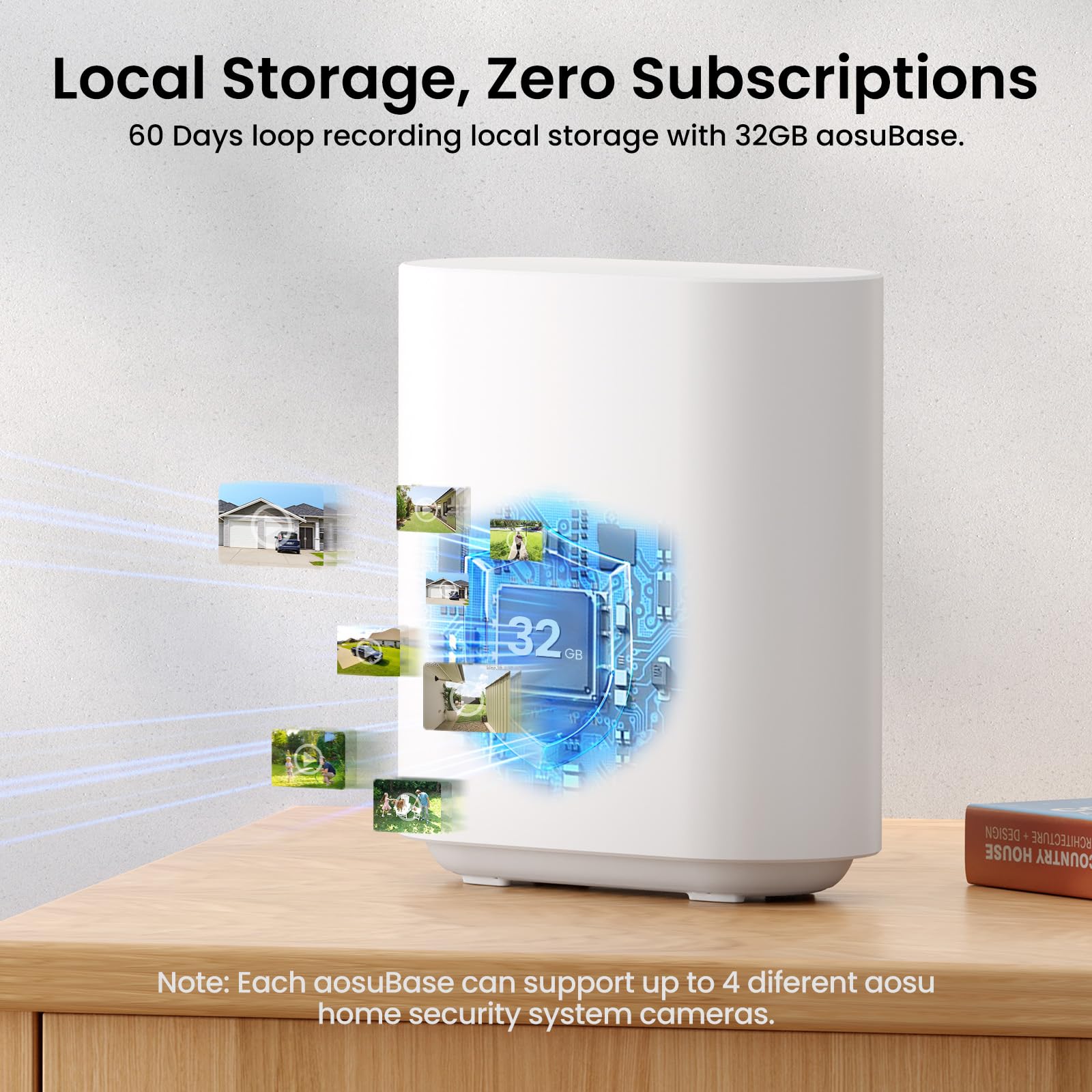 No Monthly Fees, No Hidden Fees: Enjoy peace of mind with the built-in 32GB local storage, which provides playback, encrypted video data, and video downloads of up to 60 days. (Optional Cloud service available). No Subscription cameras for home security.