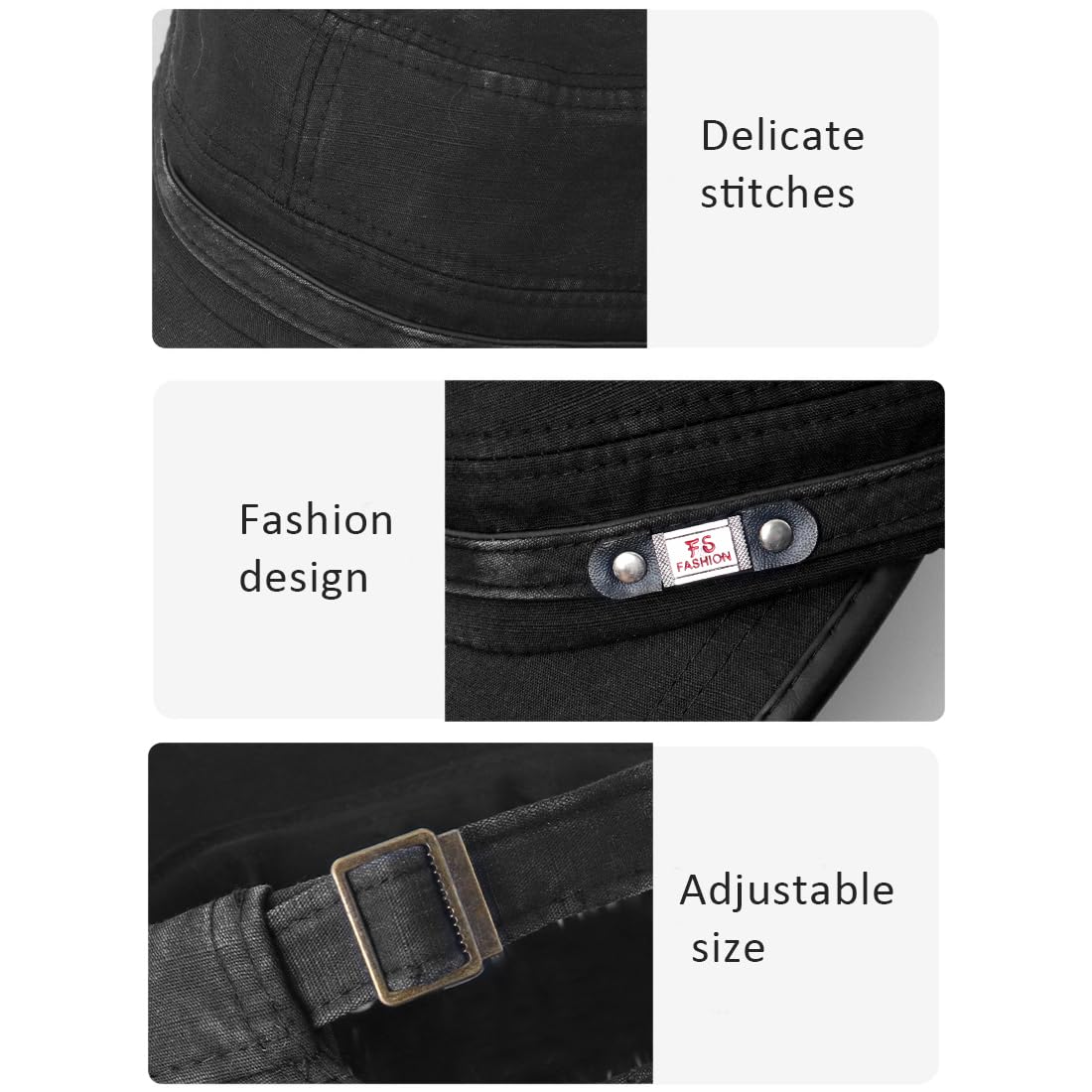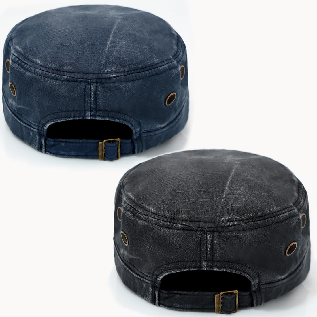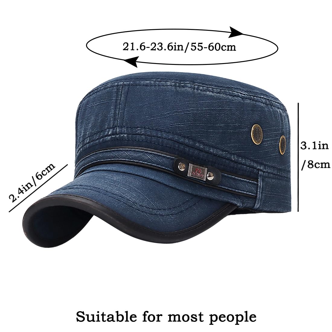 Adjustable and Portable: this vintage military corps hat designed with an adjustable metal buckle on the back and the hat circumference is 55-60cm/21.6-23.6 inches, Brim Width: 6cm/2.4 inches, Hat Height: 8cm/3.1 inches. A hat with adjustable head circumference can avoid the problem of hats being too big or too small.