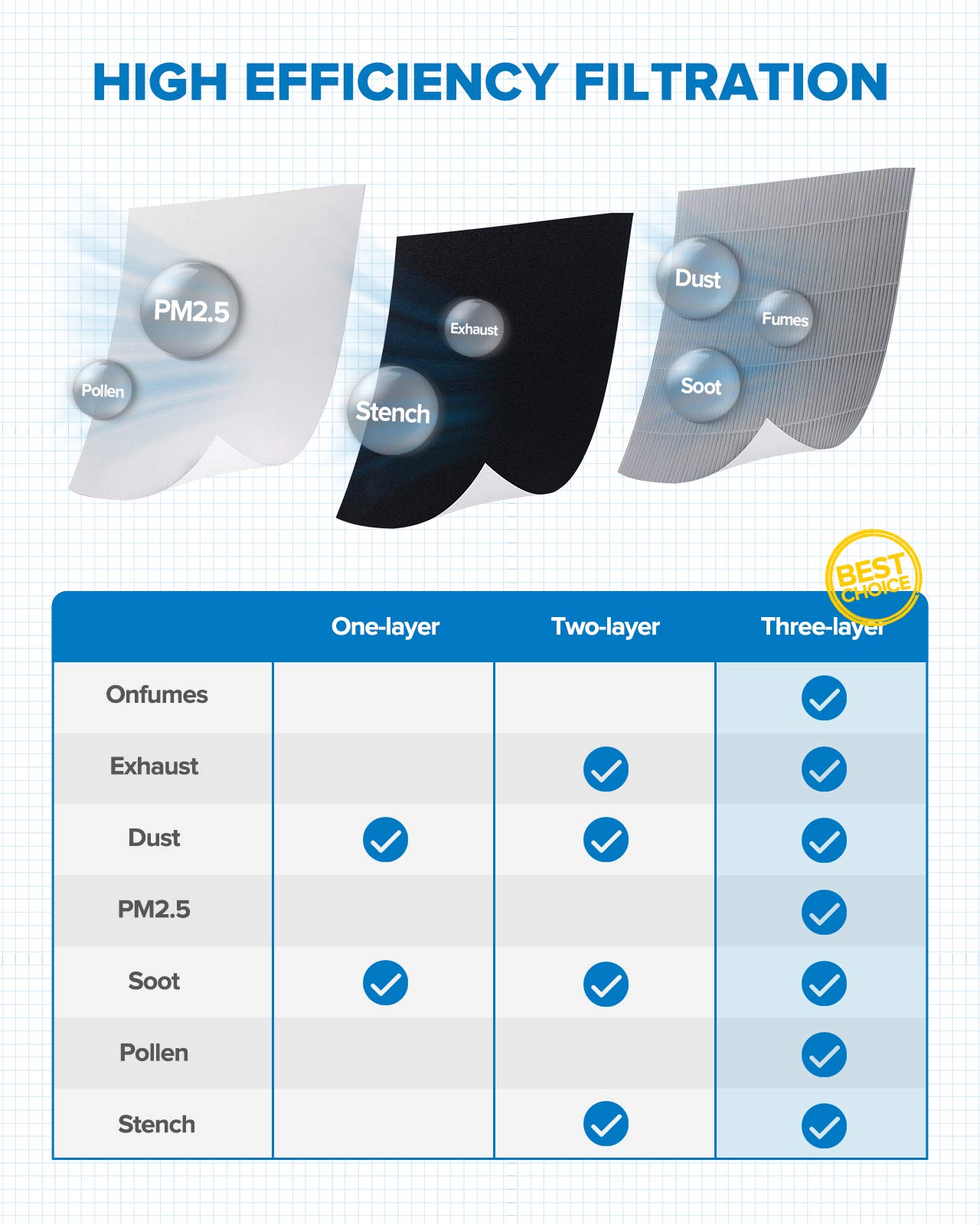 [Premium-Grade Filtration Purity]:PHILTOP cabin air filters are comprised of five layers that provide up to 99.9% filtration, that effectively reduces small particles of 0.1-0.3 microns like dust, soot, pollen and other air impurities, keep it from entering the vehicle, providing you with a comfortable interior environment