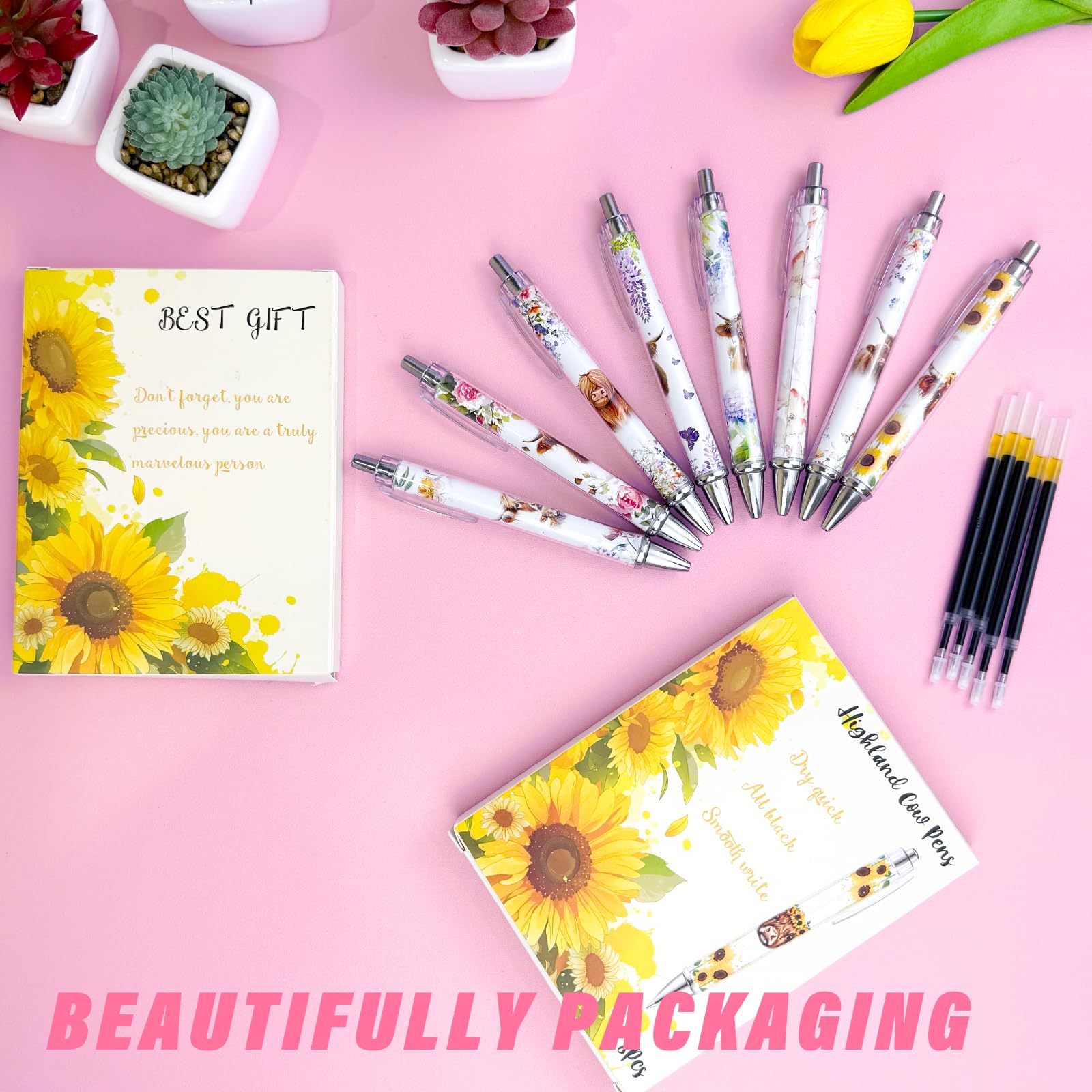 Authentic Highland Cow Design Collection:Featuring iconic Scottish Highland cow patterns with adorable facial details, these cow print pens double as desk decor for cow lovers. The vibrant color schemes create cheerful accents in classrooms, offices, or wedding party setups – perfect as Highland cow gifts for women who adore rustic charm