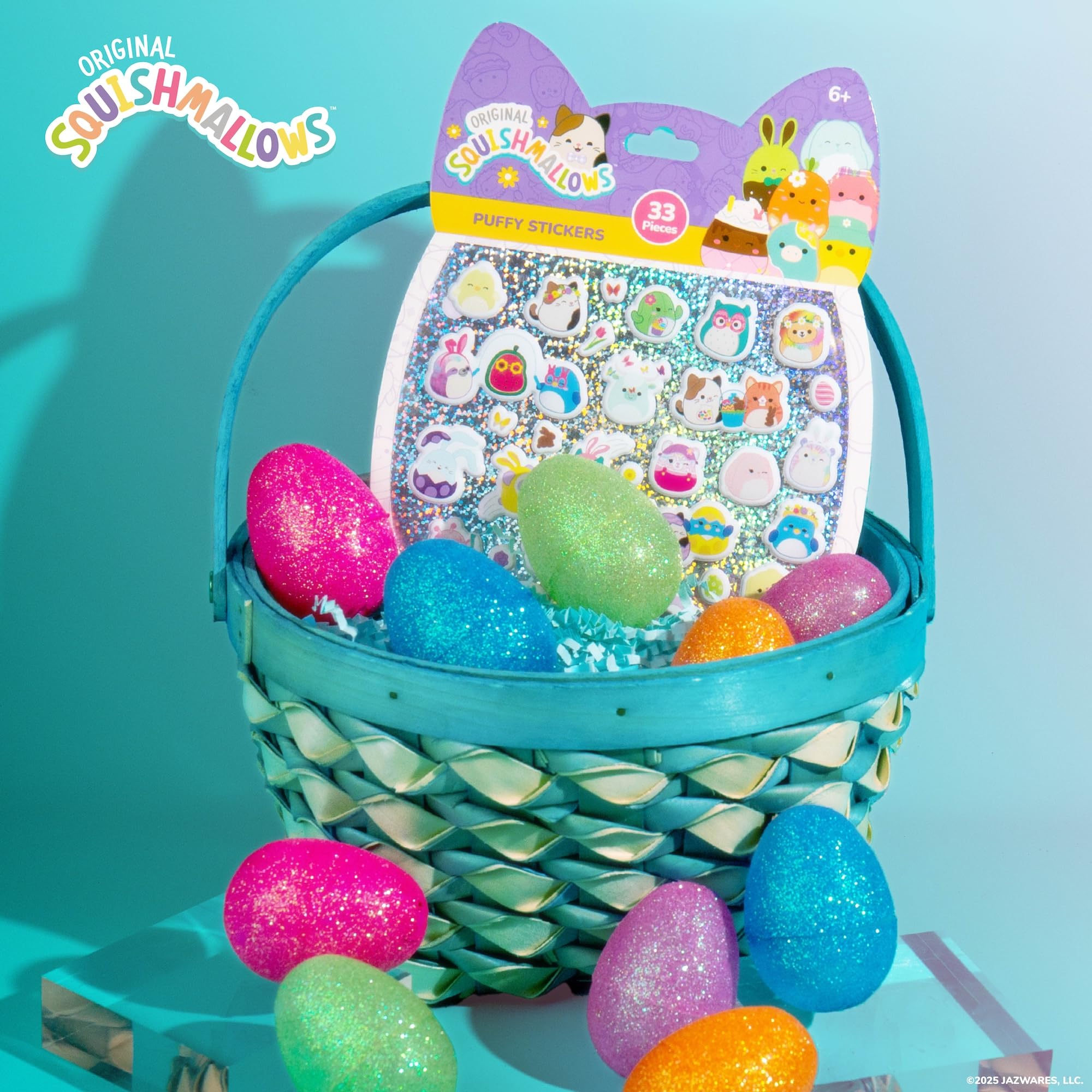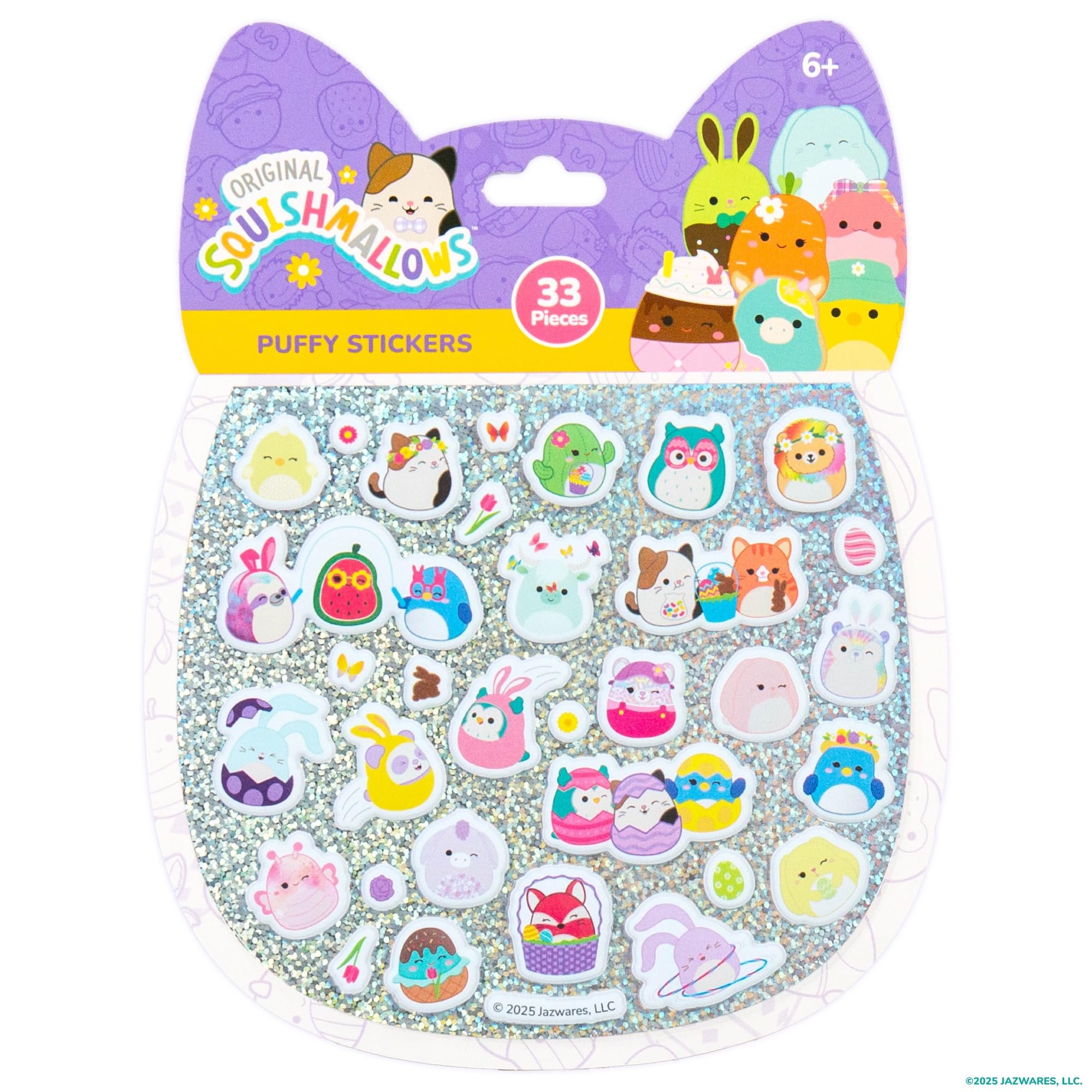 Spring has sprung, and the Squish Squad is here to bring the fun with Original Squishmallows Puffy Stickers! This set includes 33 delightfully squishy stickers that are bursting with Easter and spring vibes. From Cam and Gigi carrying an Easter egg basket to Penny and Winston rocking their bunny ears, these puffy pals add a playful sensory pop to any surface — think phone cases, journals, laptop stickers, pencil pouches, stickers for water bottles, and more! With designs like Bebe in a flower crown, Iver surrounded by butterflies, and Easter Bastian cracking out of an egg, it’s a full-on springtime celebration! Their one-of-a-kind puffiness makes them a joy to squish and stick, adding texture and charm wherever they go. Perfect for basket stuffers, classroom prizes, or just fun seasonal stationery, these 3D stickers are a must-have for any Squishmallows fan. Squad Up and stick on the smiles — there’s always More to Squish! Recommended for ages 6 and up.