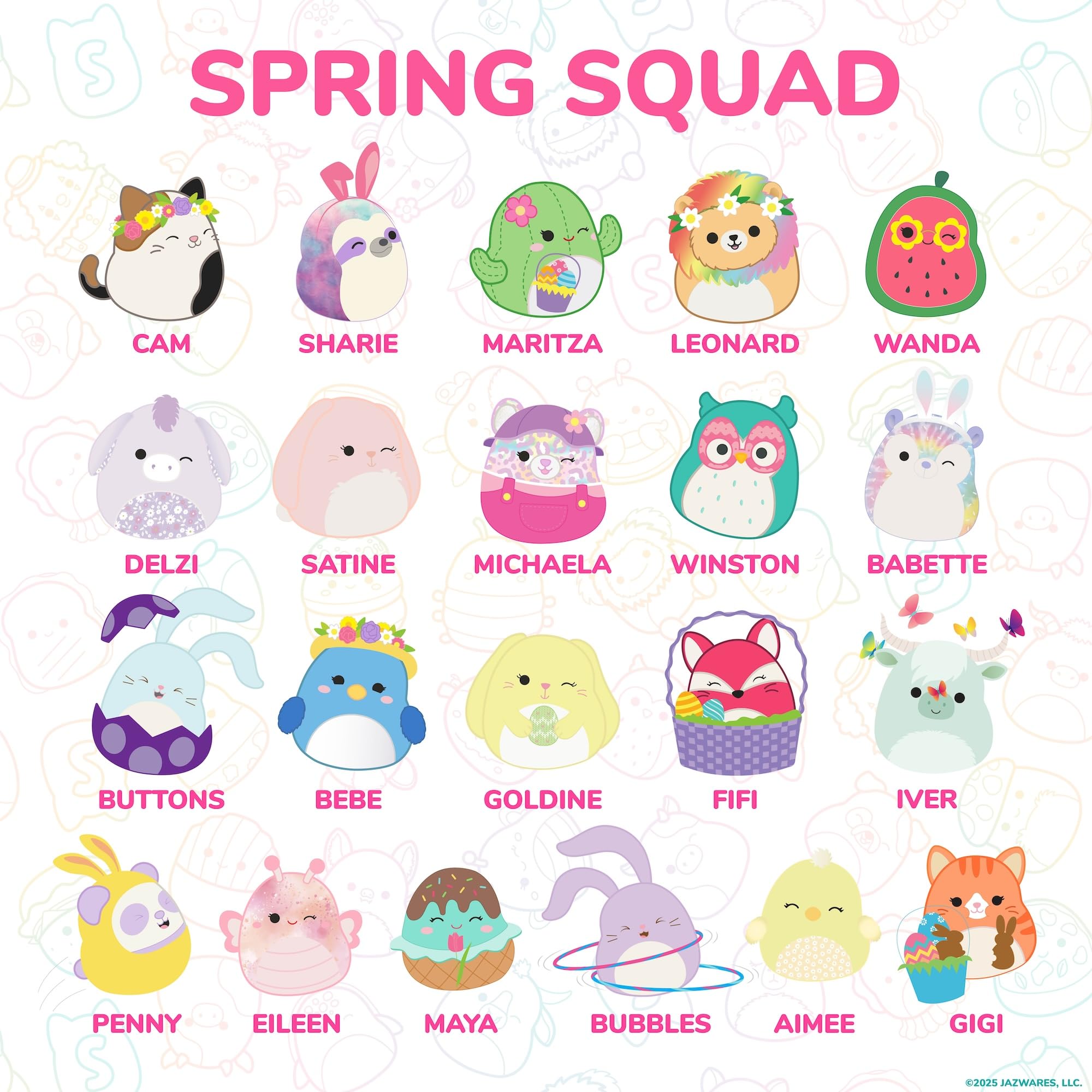 EGG-STRA SWEET STICKER SET: Features 33 soft and squishy Squishmallows stickers full of spring vibes!